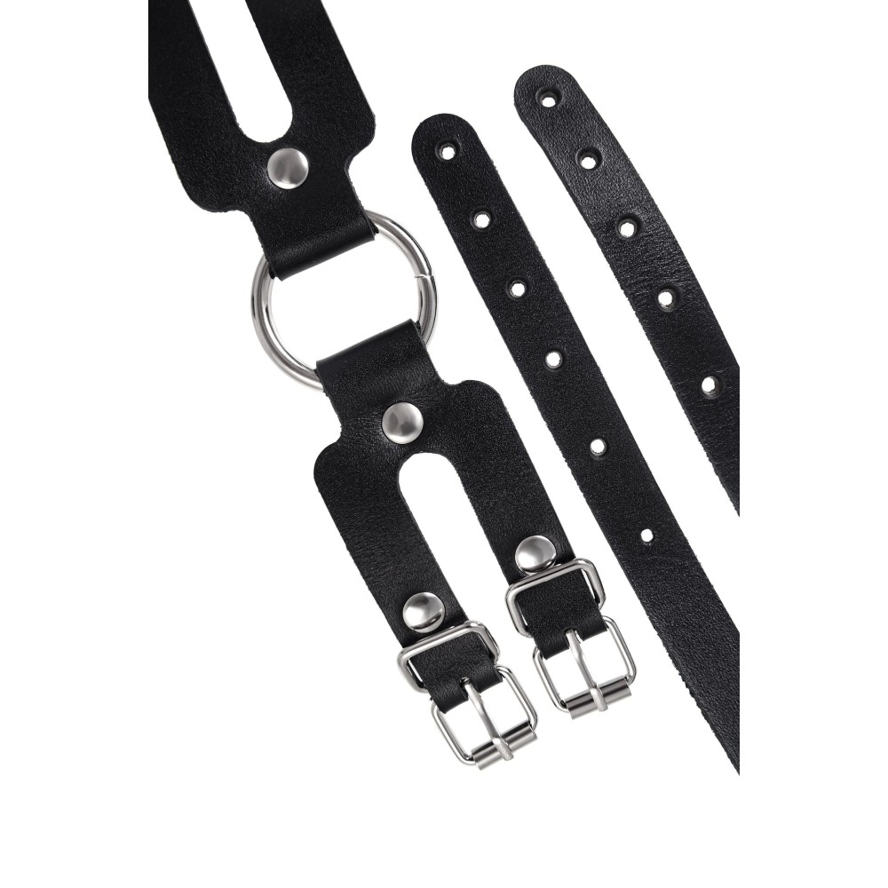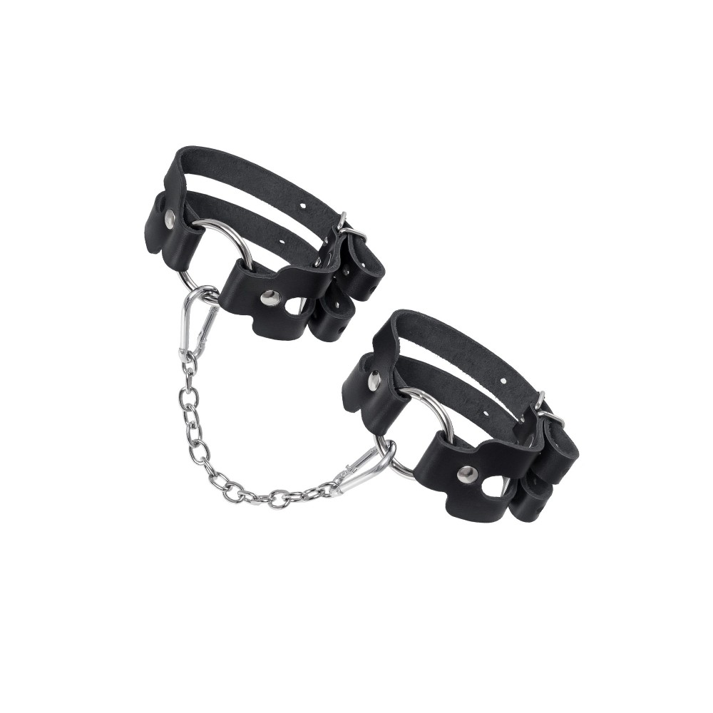 Черные кожаные оковы из двух ремешков — элегантный и функциональный аксессуар для БДСМ-практик. Изготовлены из натуральной кожи, обеспечивающей прочность и приятные тактильные ощущения. Подходят для обоих партнеров, универсальны в использовании. Российское производство гарантирует контроль качества. Идеальны для экспериментов с ограничением свободы и ролевыми играми. Поставляются без упаковки для сохранения дискретности.