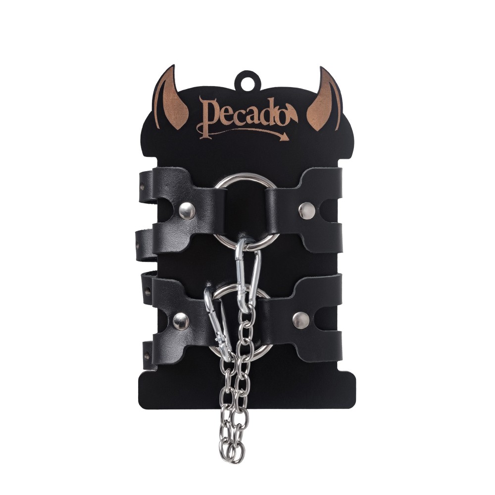Технические характеристики Черные кожаные оковы из двух ремешков