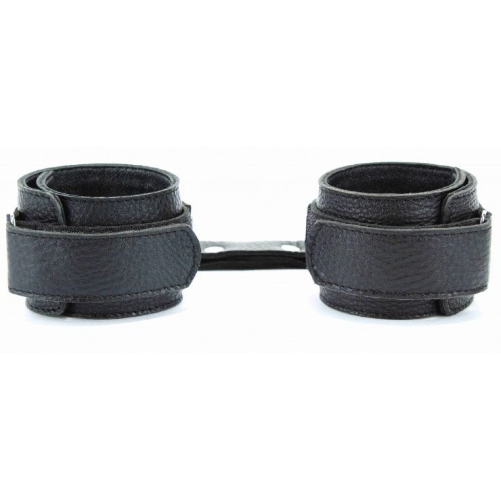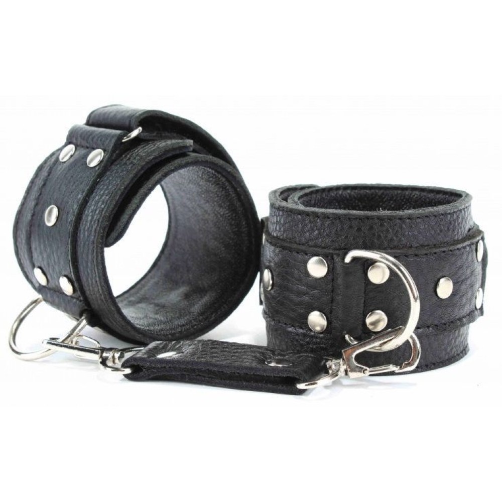 Черные кожаные оковы на липучке — элегантный аксессуар для БДСМ-практик. Изготовлены из натуральной кожи российского производства. Универсальный размер 35 см подходит для обоих партнеров. Липучка обеспечивает быстрое и комфортное фиксирование. Идеальны для ролевых игр и расширения интимных границ. Доставляются без упаковки для вашего удобства.