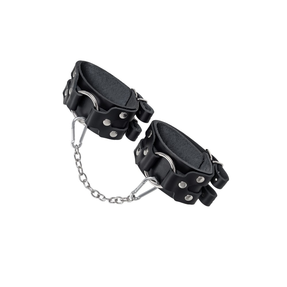 Черные кожаные оковы с двумя ремешками — элегантный и функциональный аксессуар для БДСМ-практик. Изготовлены из натуральной кожи и металла, обеспечивая прочность и комфорт при использовании. Подходят для обоих партнеров, идеальны для экспериментов с доминированием и подчинением. Российское производство и качественные материалы гарантируют долговечность. Поставляются без упаковки, готовы к немедленному использованию в ваших смелых сценариях.