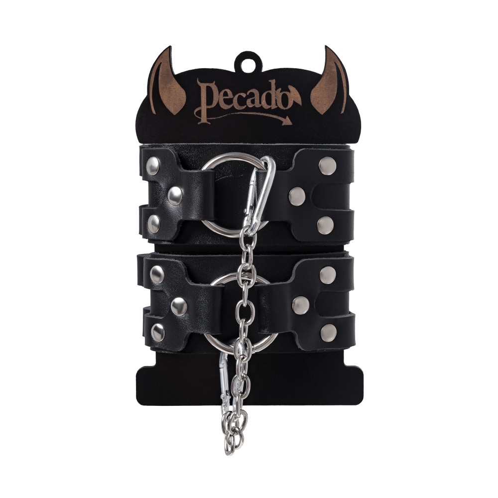 Технические характеристики Черные кожаные оковы с двумя ремешками
