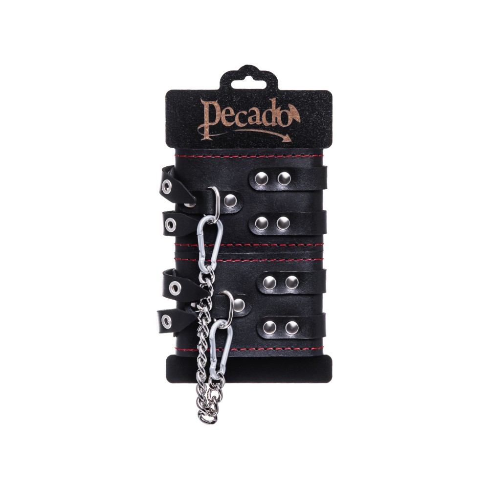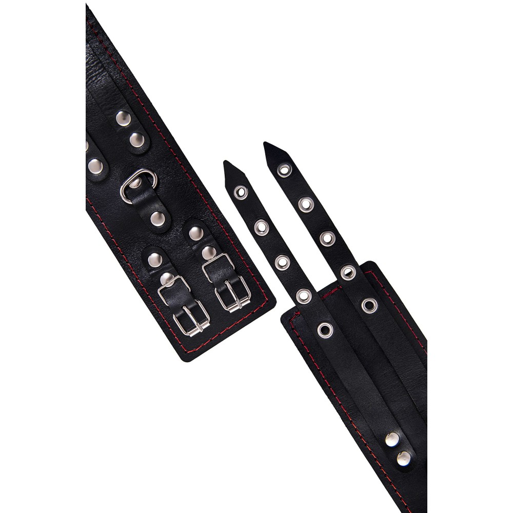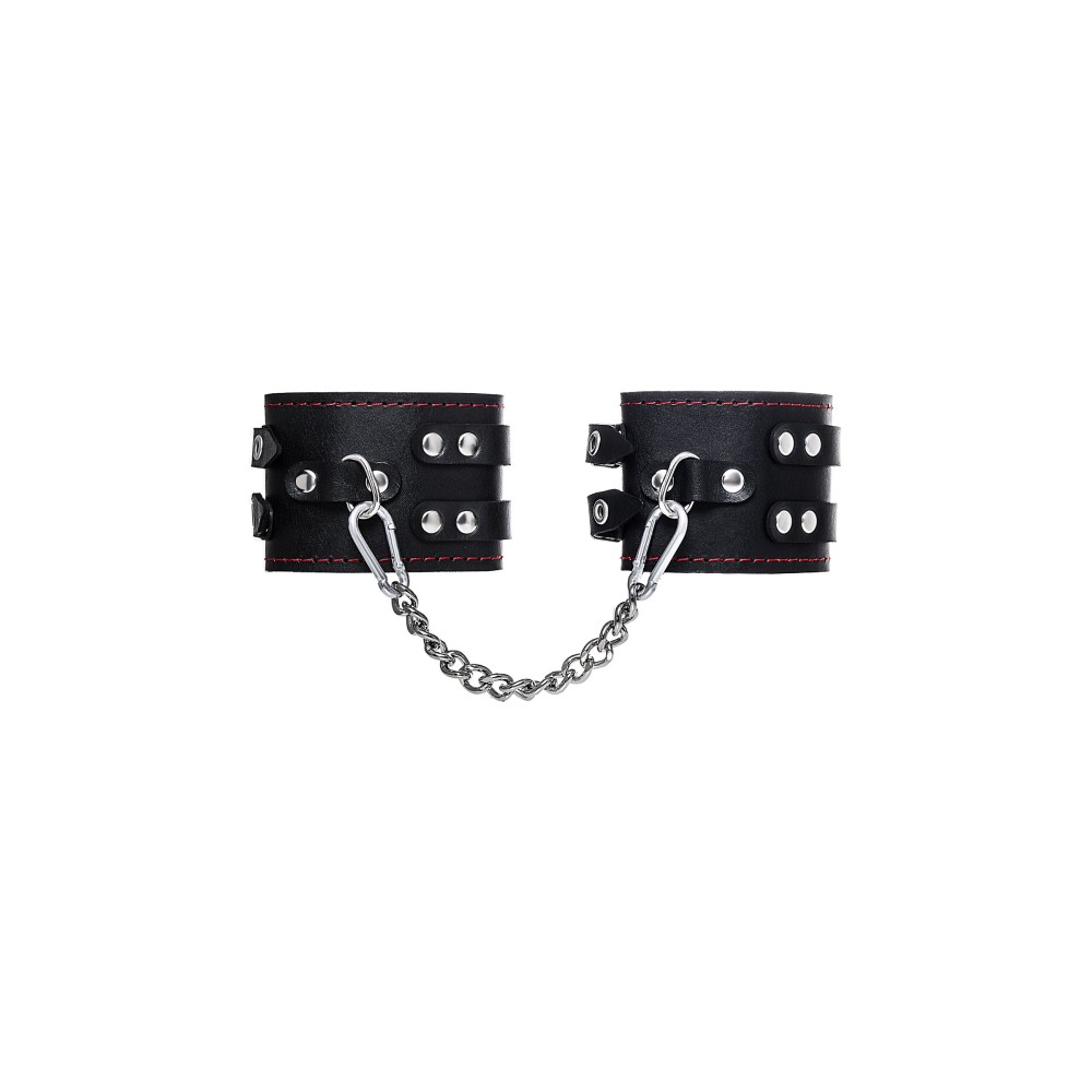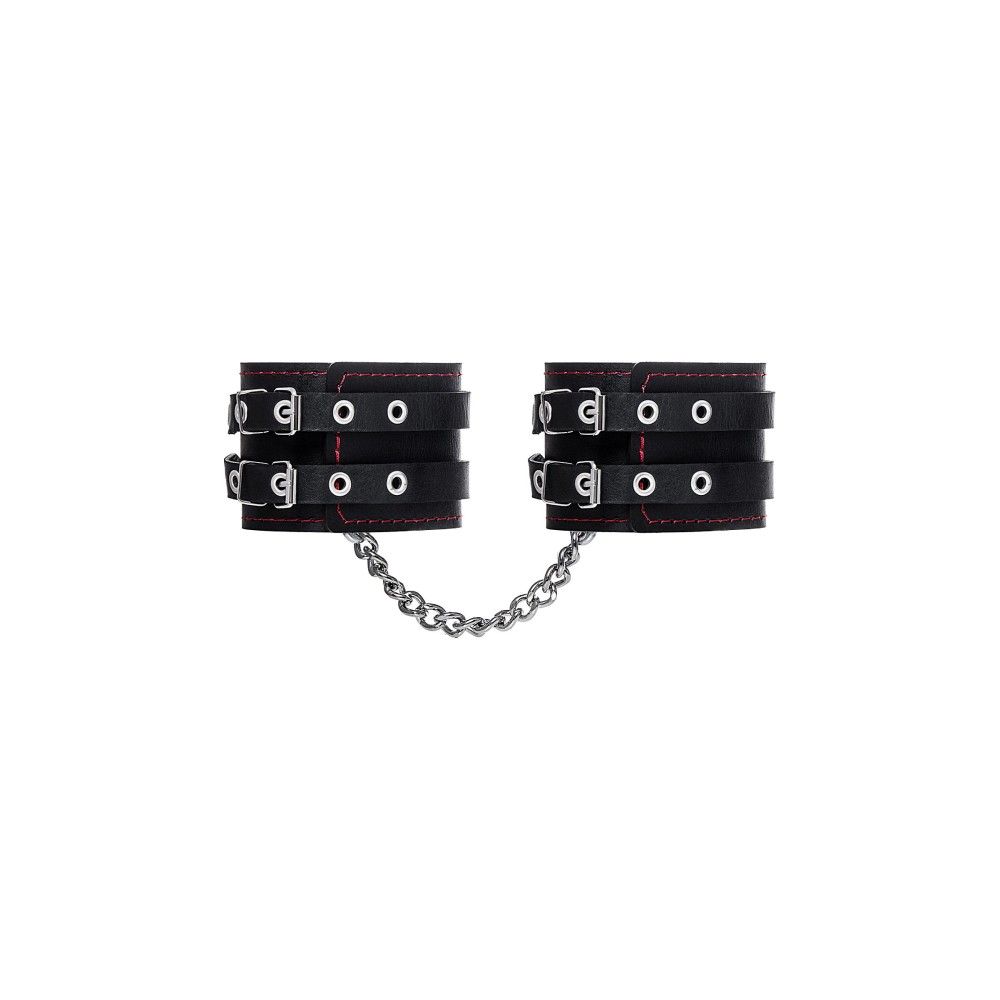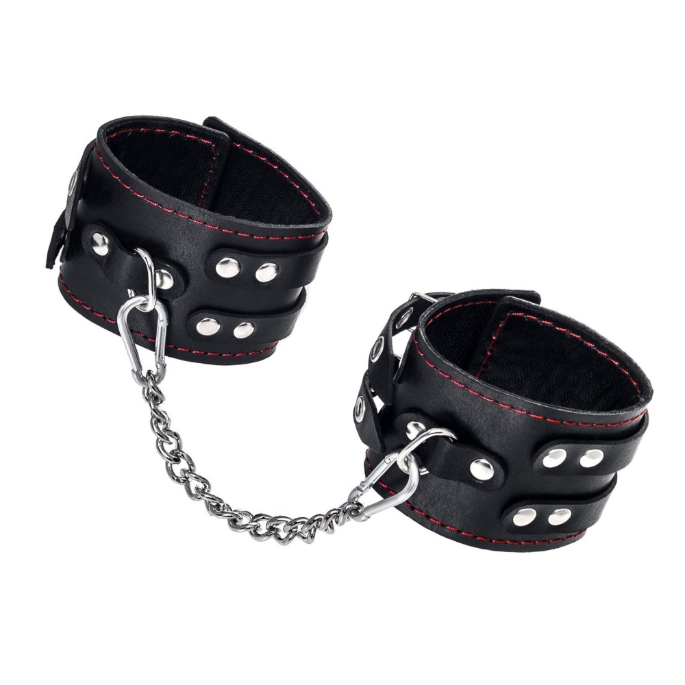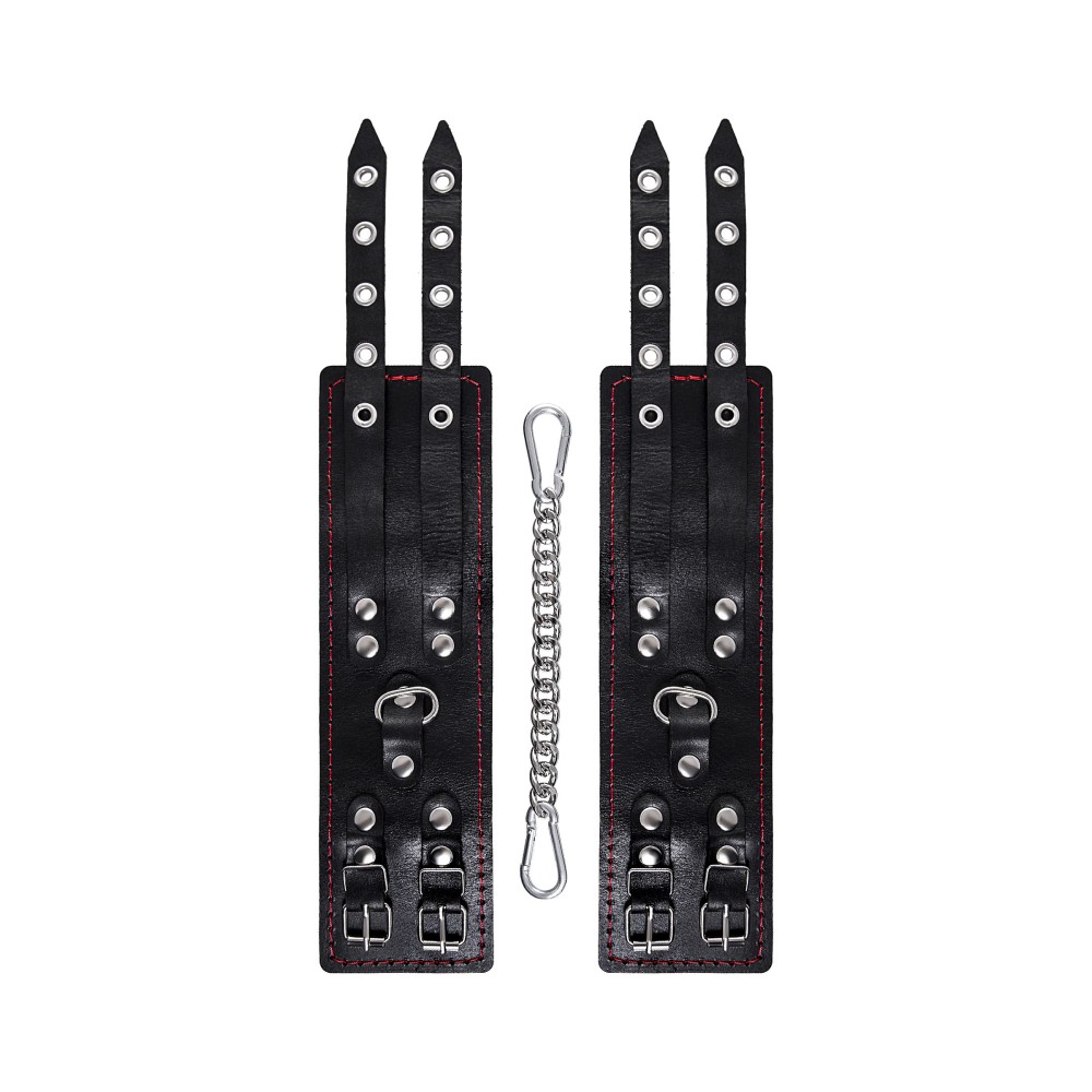 Элегантные и надежные кожаные оковы для БДСМ-практик, выполненные из качественной натуральной кожи. Два регулируемых ремня с контрастной строчкой обеспечивают комфортную и надежную фиксацию. Универсальный дизайн подходит для обоих партнеров. Идеальная атрибутика для расширения границ интимных отношений и экспериментов с доминированием и подчинением.