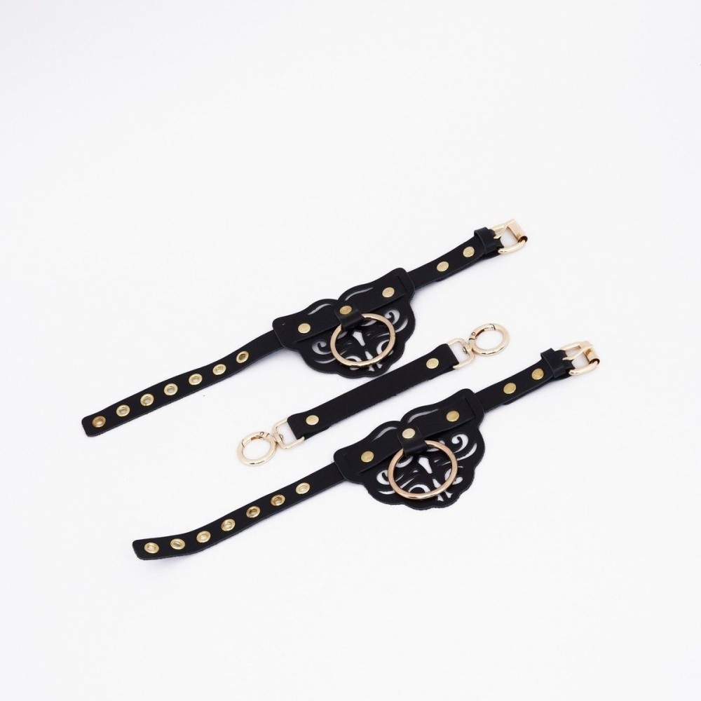 Технические характеристики Черные кожаные оковы с резными узорами и клепками