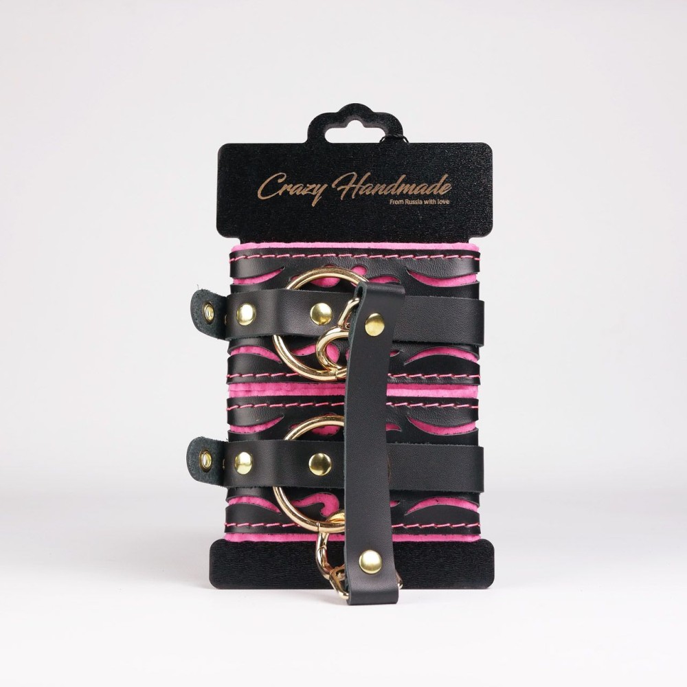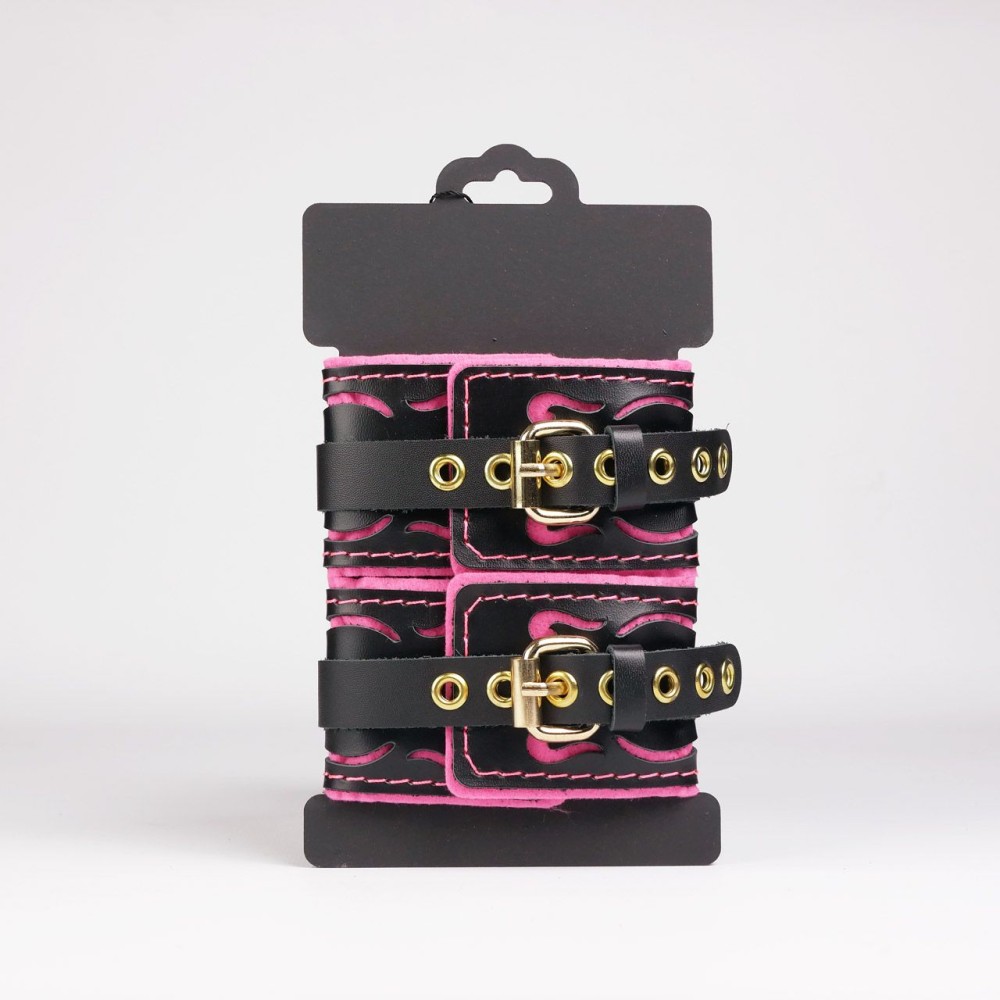Черные кожаные оковы с розовой строчкой