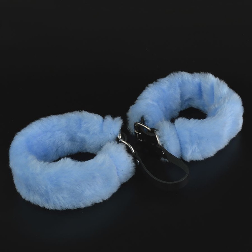 Черные кожаные оковы со съемной голубой опушкой — элегантный аксессуар для BDSM-практик. Изготовлены из натуральной кожи и металла с меховой отделкой. Универсальный дизайн подходит для обоих партнеров. Съемная опушка позволяет варьировать интенсивность ощущений. Входит в коллекцию BDSM accessories российского производства. Поставляется в прозрачной упаковке. Идеальны для ролевых игр и расширения сексуальных границ.