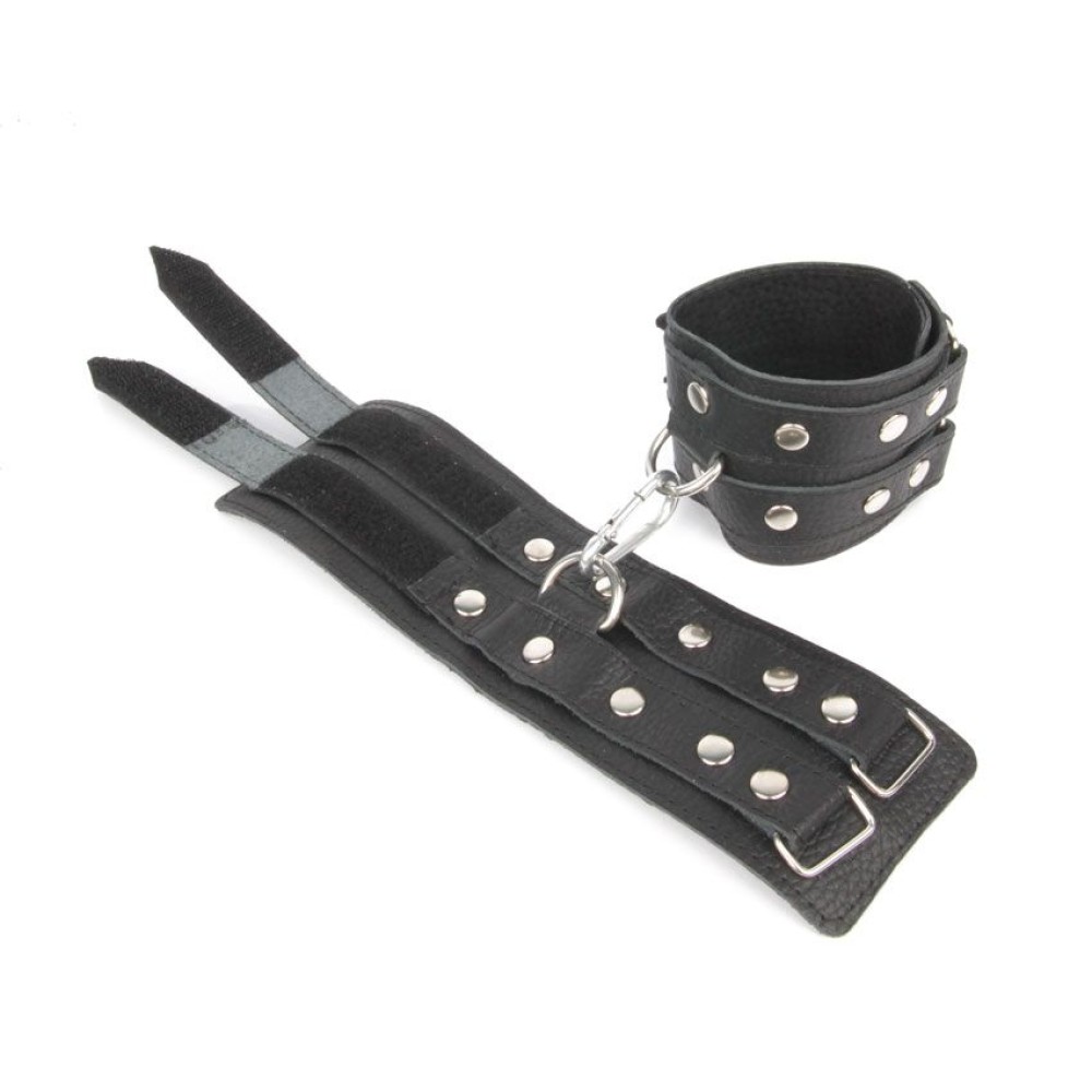 Черные широкие кожаные наручники с заклепками на карабине — стильный аксессуар для БДСМ-практик. Изготовлены из натуральной кожи повышенной прочности, обеспечивают надежную фиксацию. Декоративные заклепки создают эстетичный фетиш-вид, а металлический карабин гарантирует удобство использования. Универсальный размер подходит для мужчин и женщин. Идеальны для ролевых игр и расширения сексуальных границ. Поставляются в прозрачном пакете. Бренд: Китай, производство: Россия.