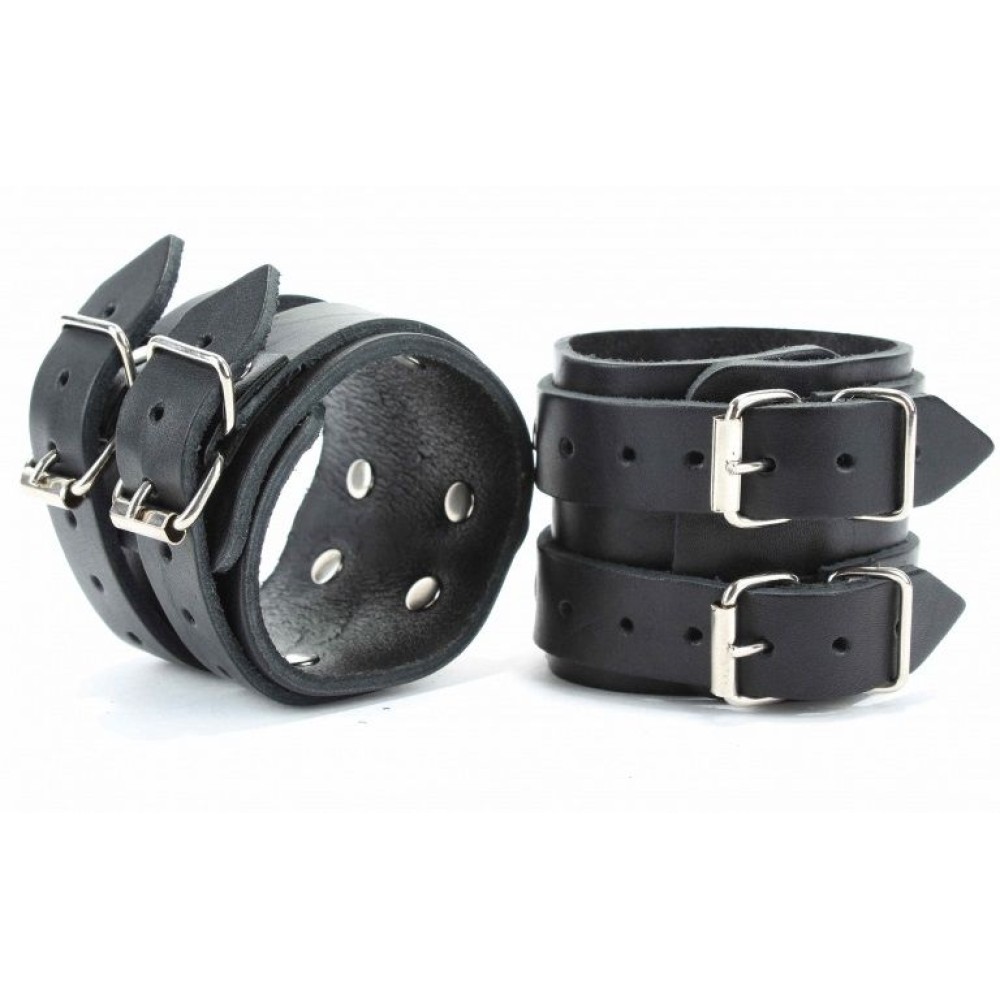 Черные широкие кожаные оковы с двумя пряжками
