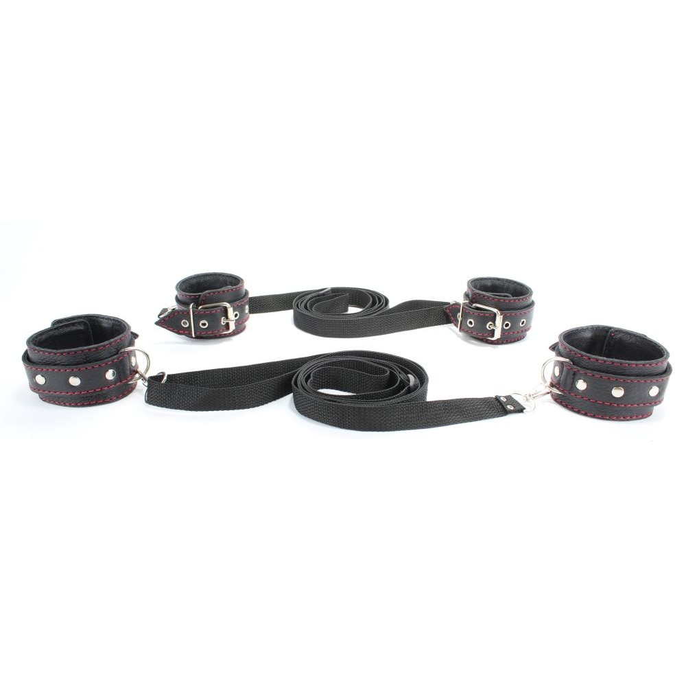 Черный бондажный набор с красной строчкой — элегантный комплект для БДСМ-практик. Выполнен из натуральной кожи с контрастной красной строчкой, что обеспечивает не только эстетическую привлекательность, но и повышенную прочность. Набор подходит для обоих партнеров и включает основные элементы для комфортного ограничения свободы. Функциональная садомазохистская атрибутика российского производства поставляется без упаковки, что позволяет сразу начать использование. Идеален для экспериментов в доминировании и подчинении.