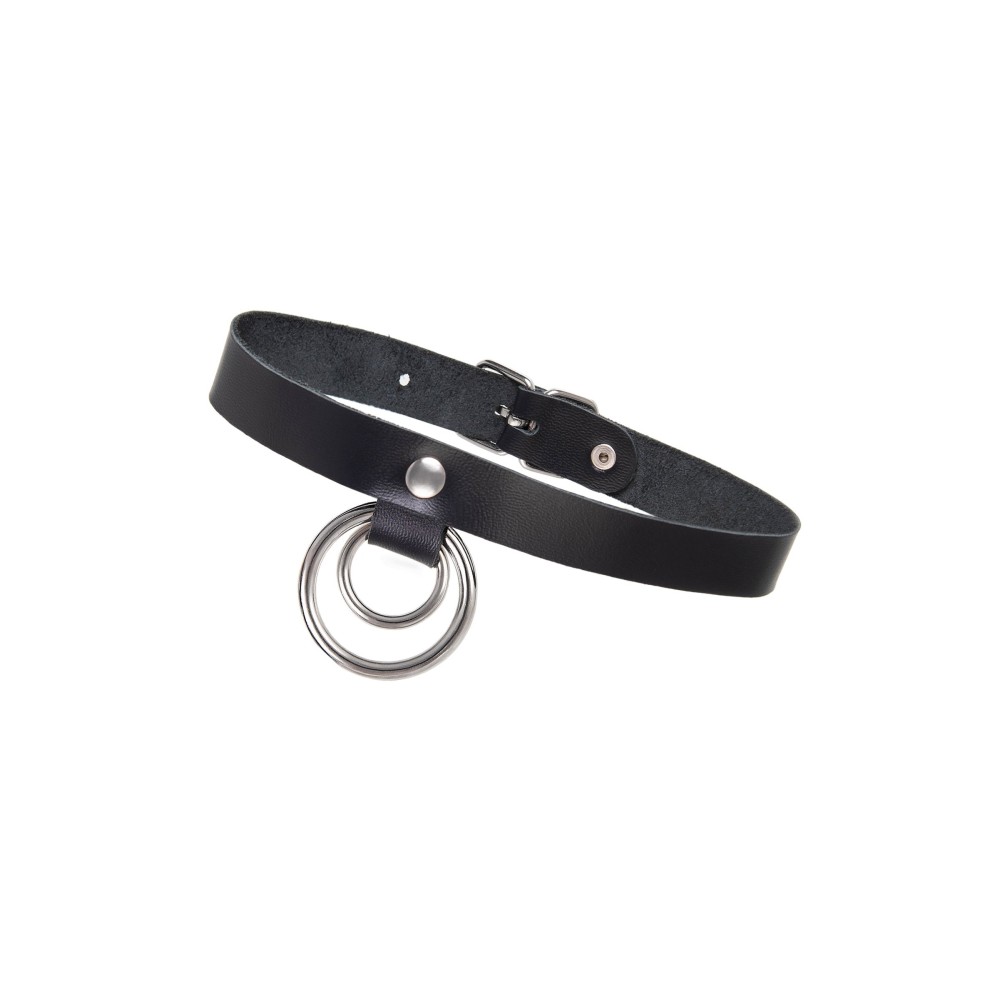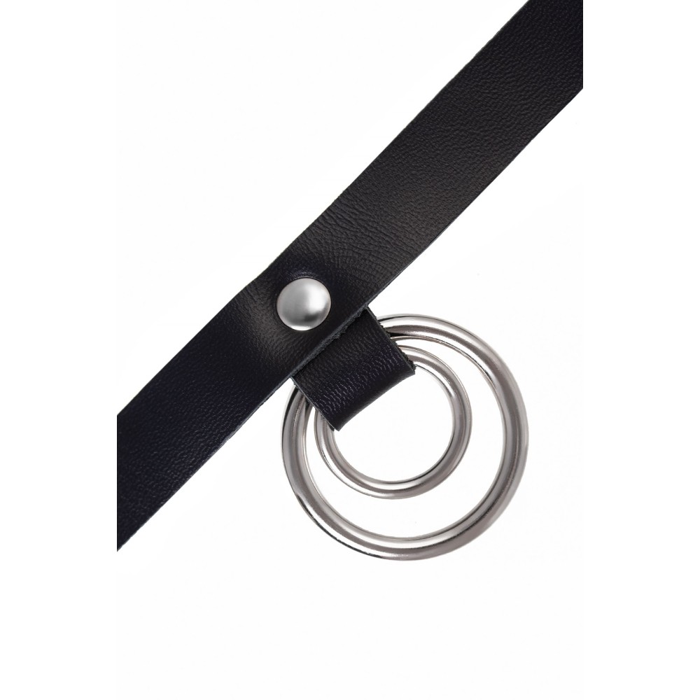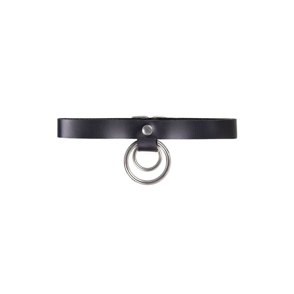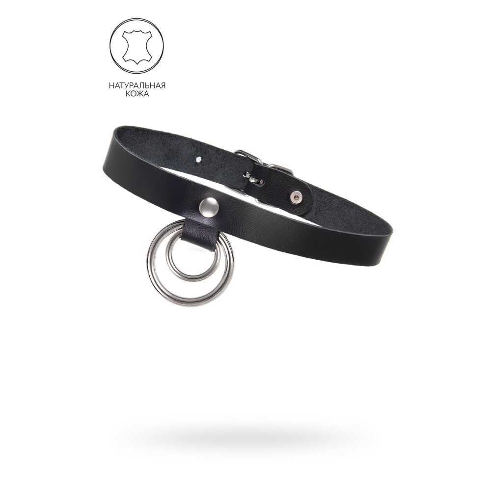 Черный чокер-ошейник с кольцом в кольце из натуральной кожи. Универсальный аксессуар для БДСМ-практик. Длина 45 см обеспечивает комфортную посадку. Российское производство и бренд. Поставляется без упаковки. Идеален для ролевых игр и доминирования.