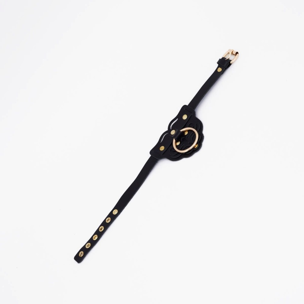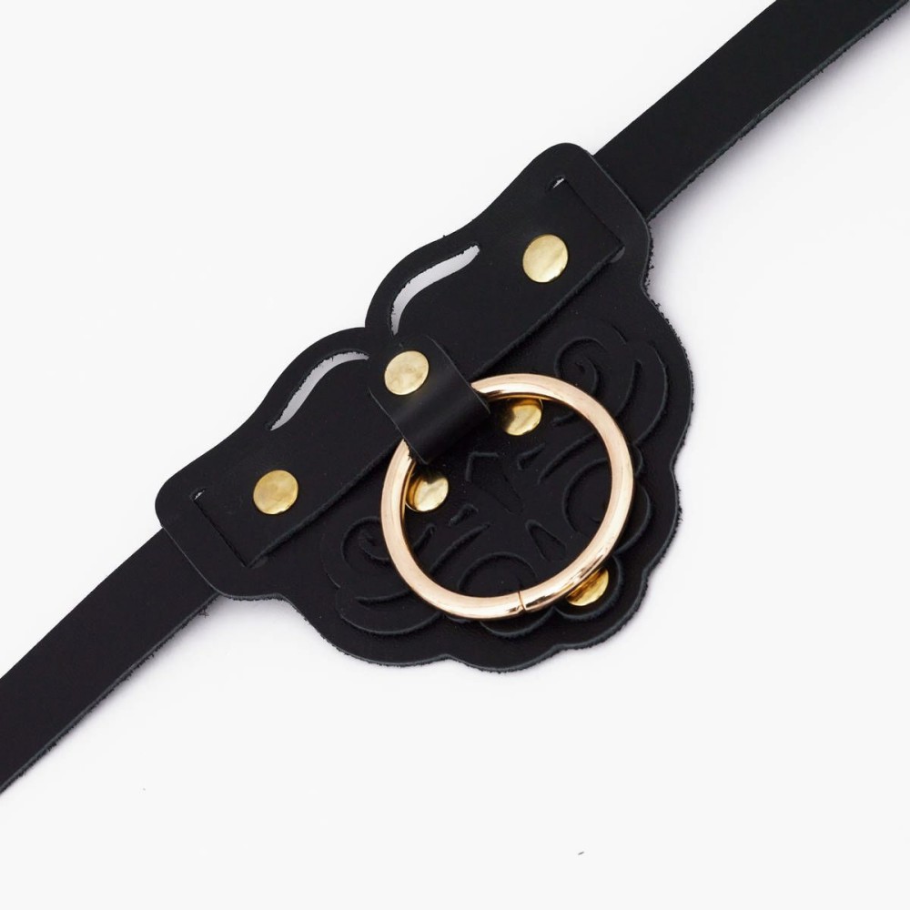 Черный фигурный кожаный ошейник с золотистой фурнитурой