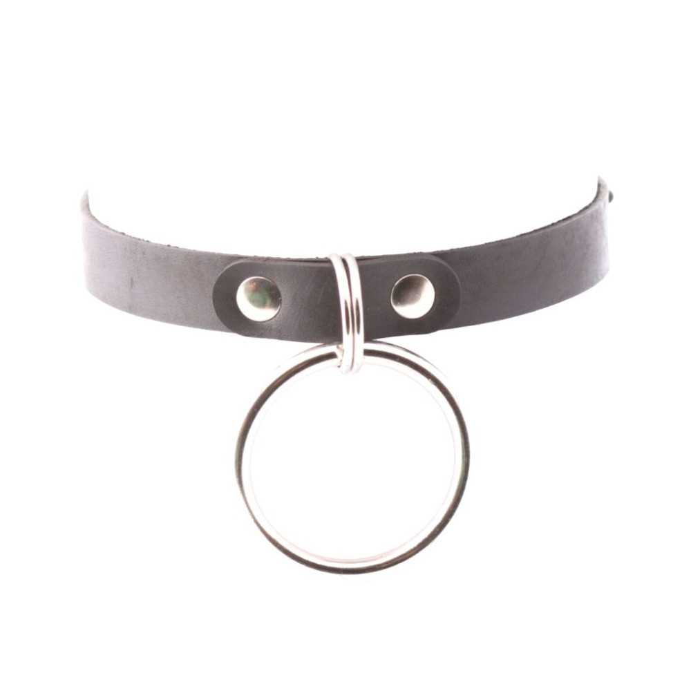 Черный кожаный чокер с большим кольцом