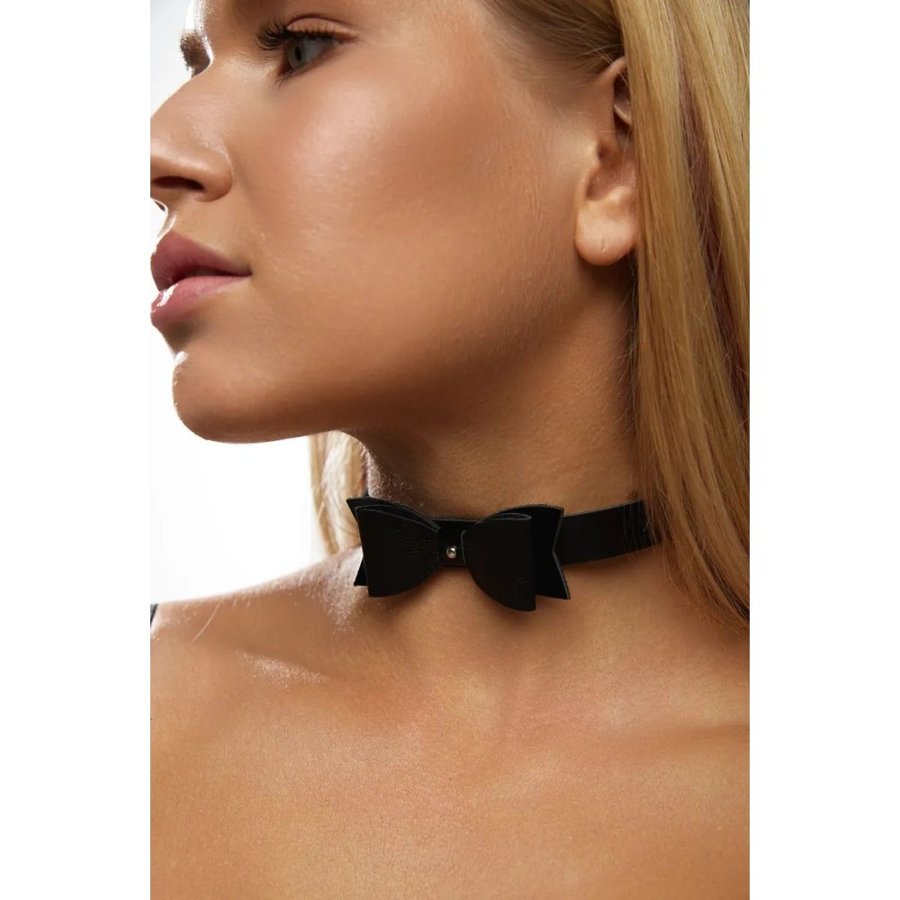 Технические характеристики Черный кожаный однослойный чокер с бабочкой