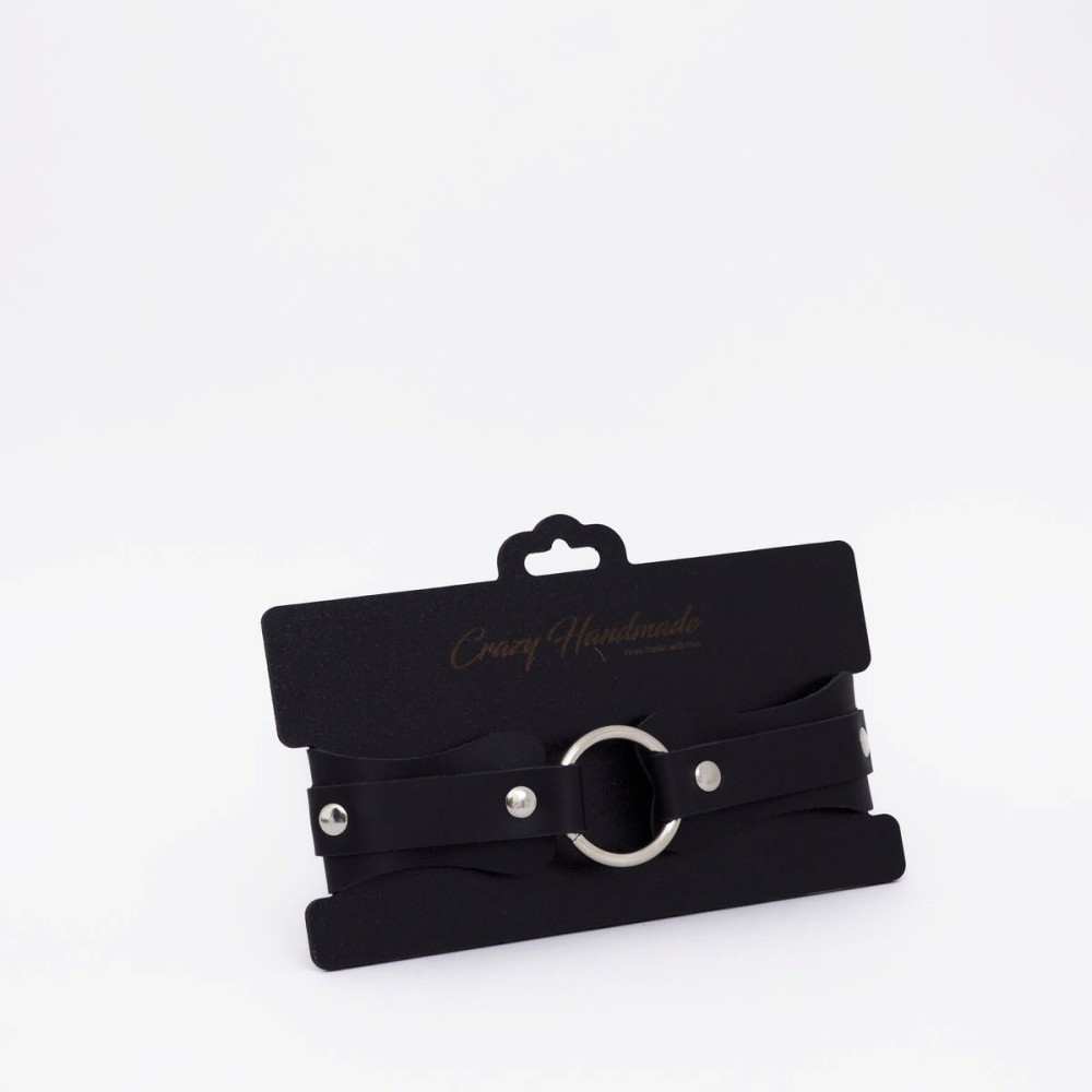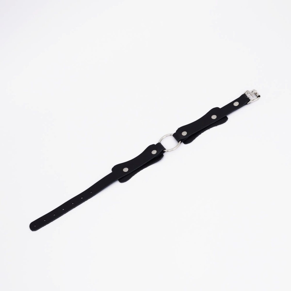 Черный кожаный ошейник с кольцом — стильный аксессуар для БДСМ-практик. Изготовлен из натуральной кожи, длина регулируется до 40 см. Универсальная модель подходит для обоих партнеров. Кольцо функциональное — позволяет пристегнуть поводок или другие аксессуары. Идеален для доминирования и ролевых игр. Производство Россия. Поставляется без упаковки.