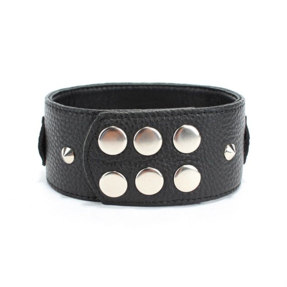 Черный кожаный ошейник с короткими шипами — стильный аксессуар для БДСМ-практик. Изготовлен из натуральной кожи российского производства, подходит для обоих партнеров. Идеален для доминирования и подчинения в интимных играх. Поставляется без упаковки.