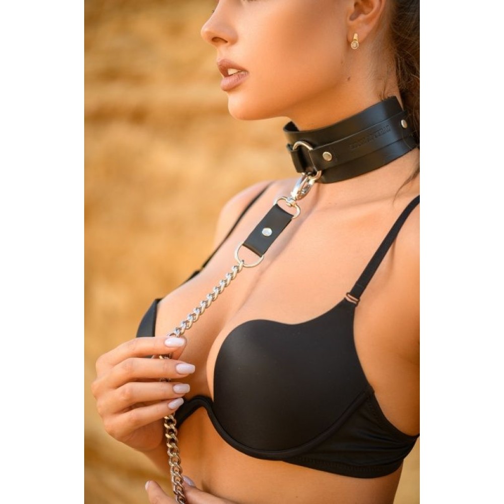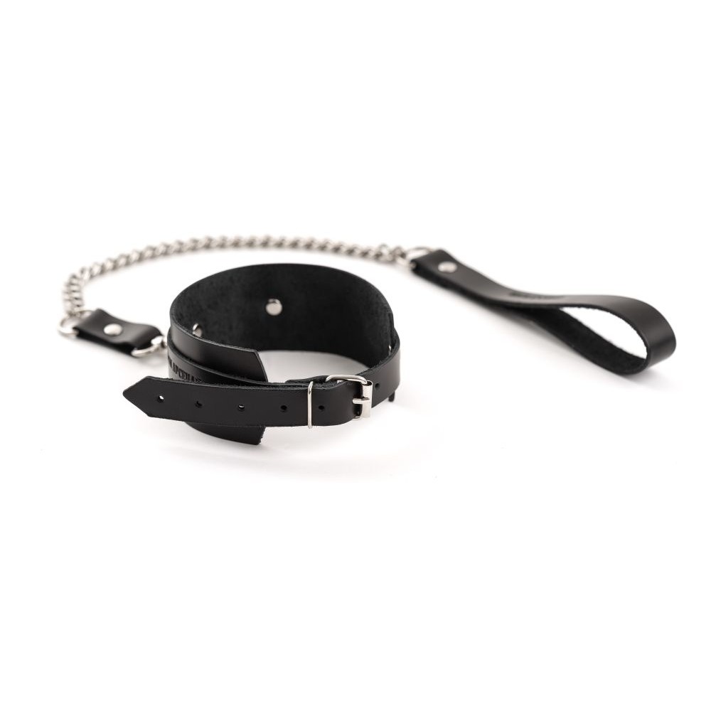 Черный кожаный ошейник с поводком из коллекции Lady's Arsenal Black. Изготовлен из натуральной кожи российского производства. Универсальная модель для обоих партнеров. Идеальный аксессуар для БДСМ-практик и ролевых игр. Поставляется в стильной картонной коробке. Надежная фурнитура, регулируемый размер, эргономичная ручка поводка. Добавьте остроты в ваши интимные отношения с этим качественным атрибутом для доминирования и подчинения.