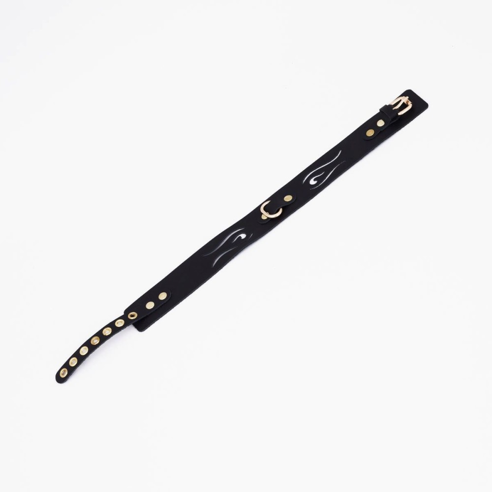 Технические характеристики Черный кожаный ошейник с золотистой фурнитурой