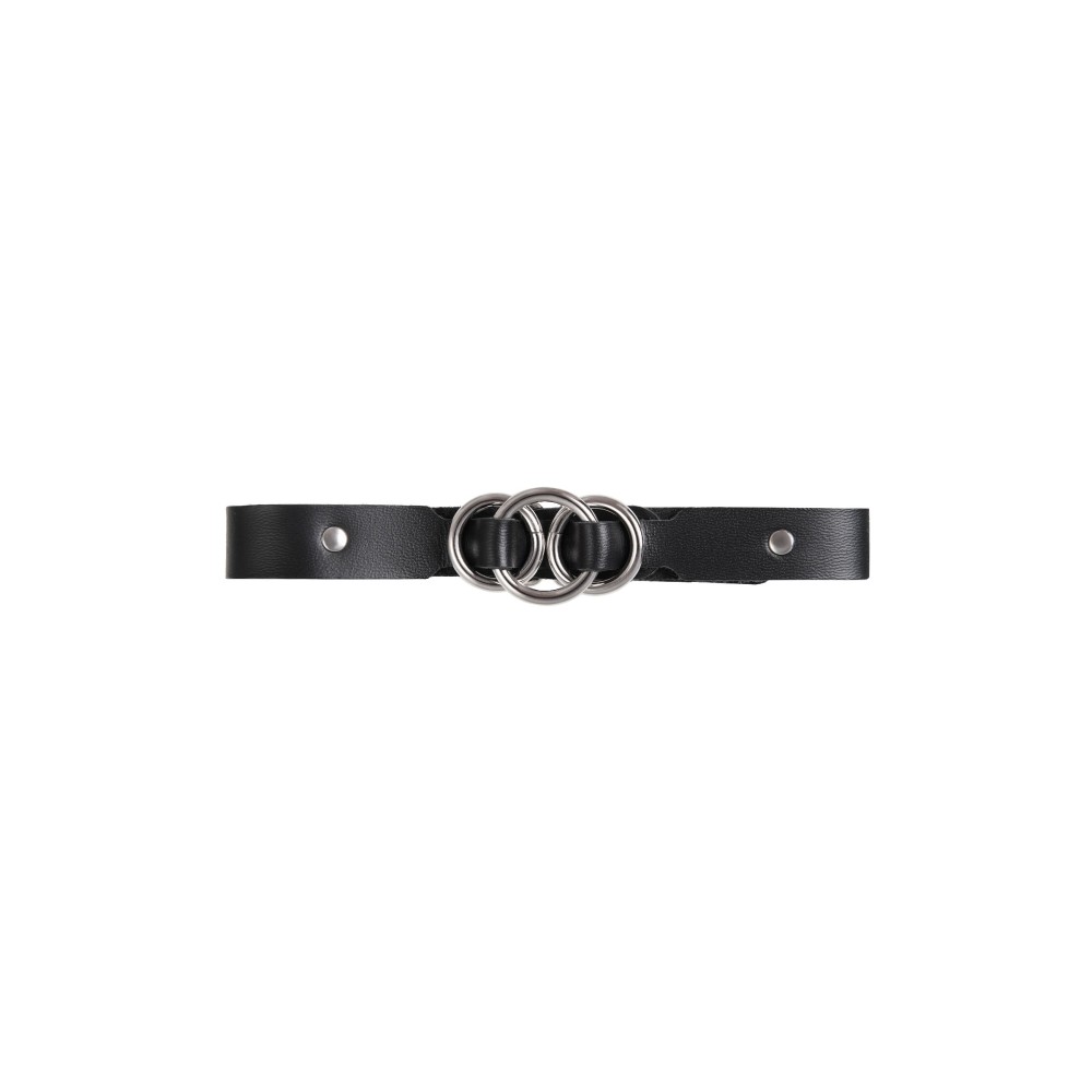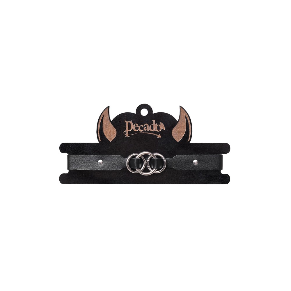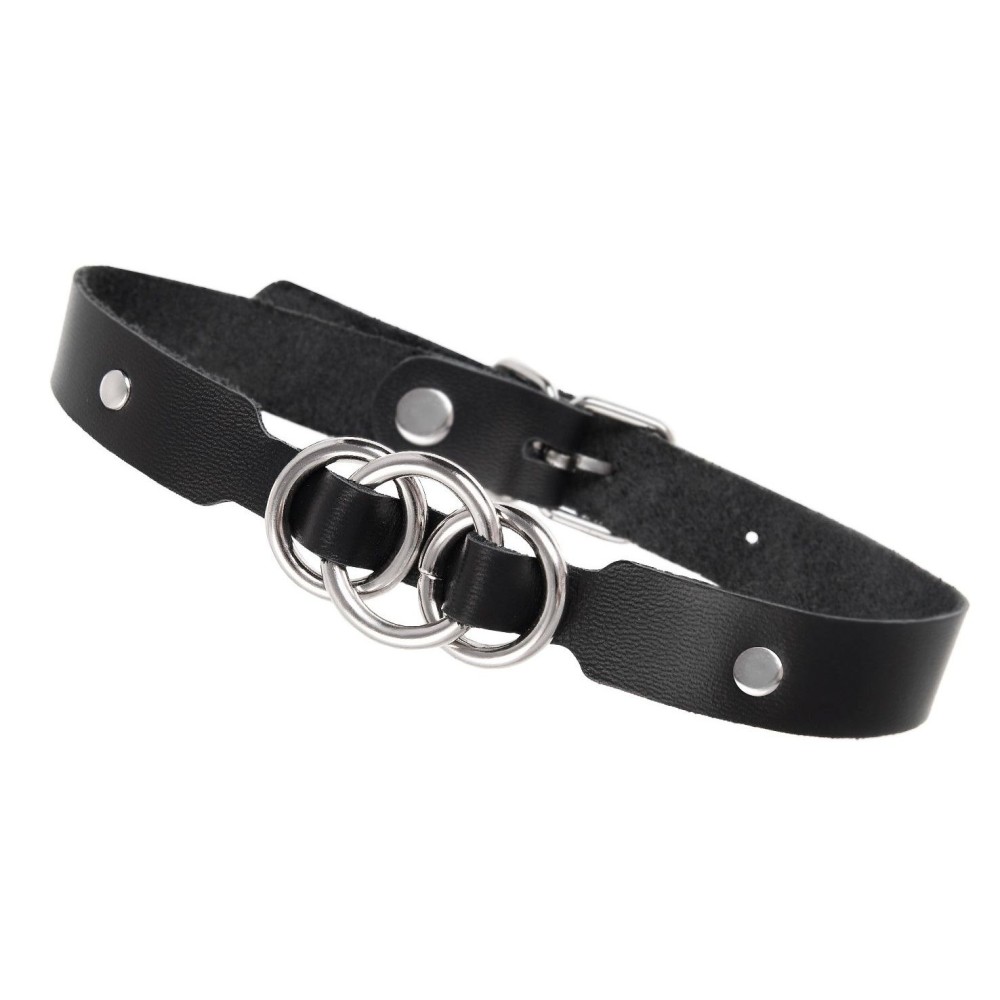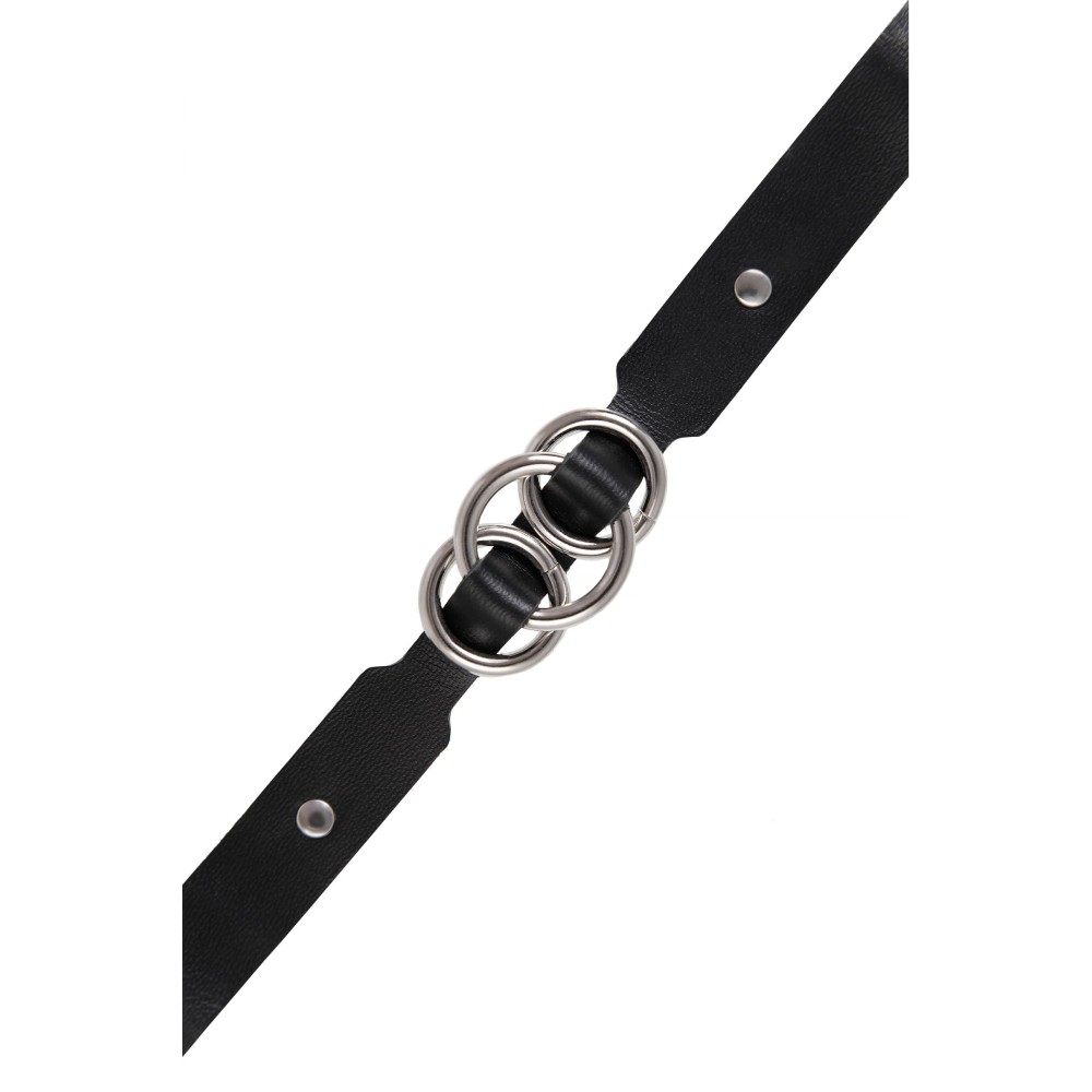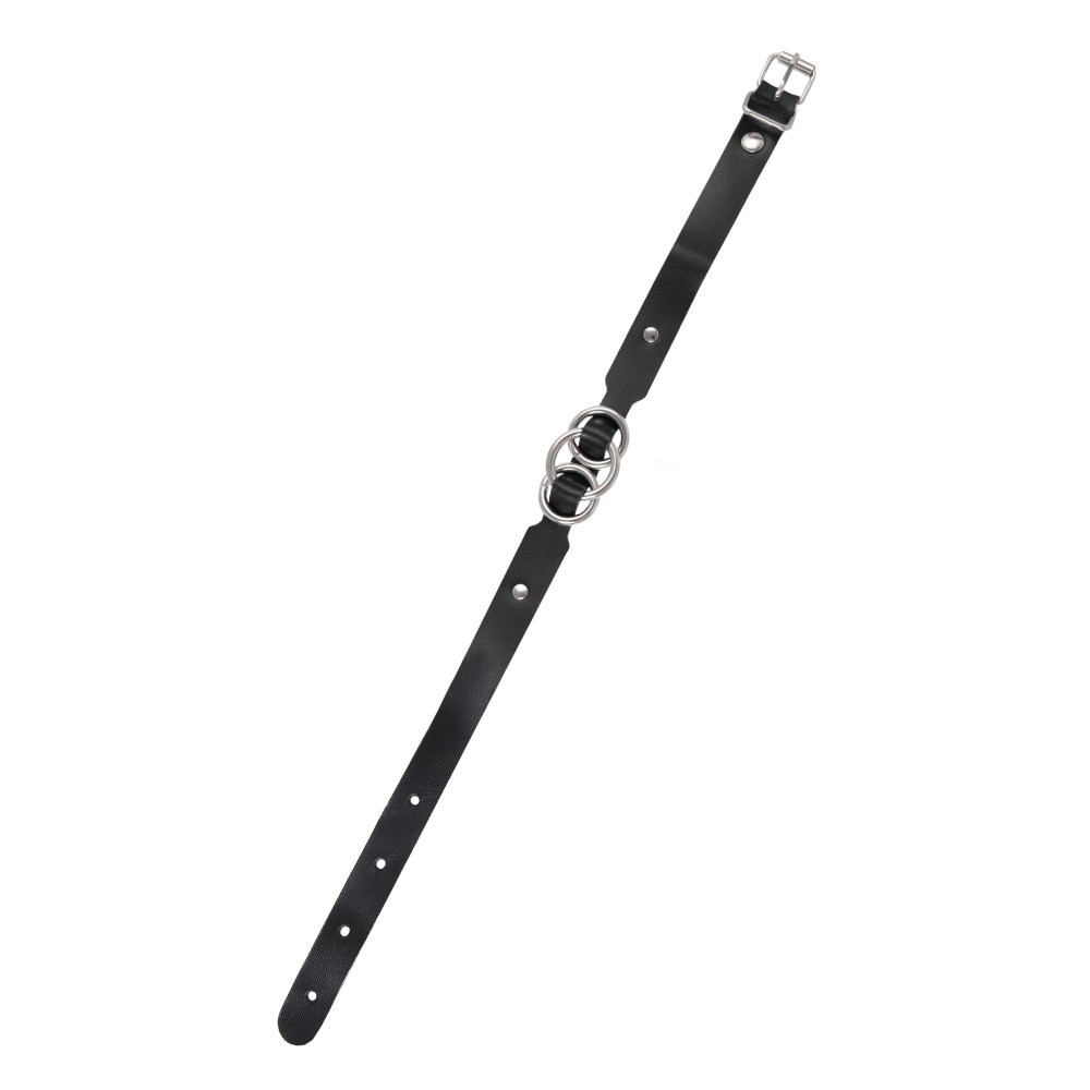 Черный кожаный ошейник со связанными кольцами