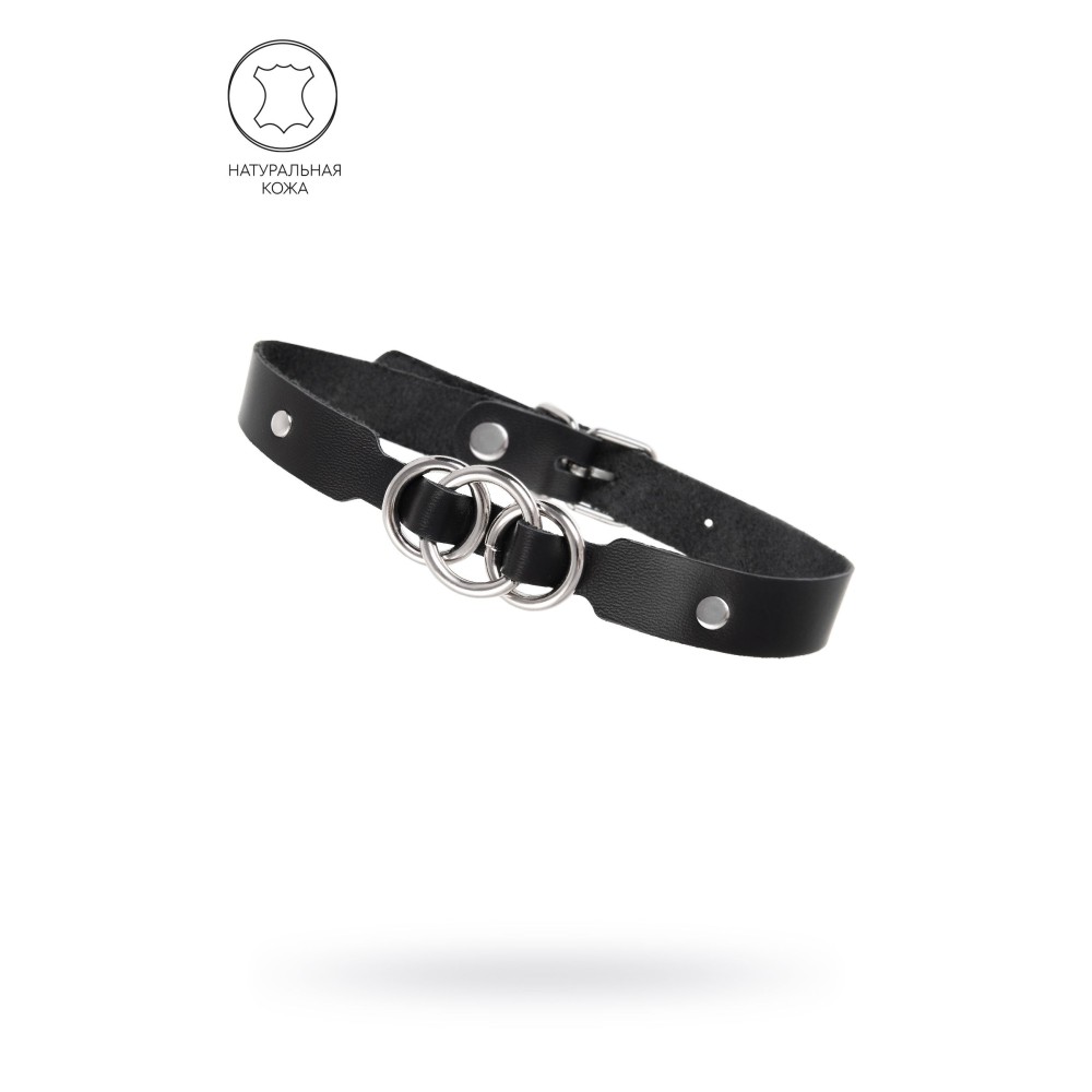 Черный кожаный ошейник со связанными кольцами — стильный аксессуар для БДСМ-практик. Изготовлен из натуральной кожи, обеспечивающей комфорт и долговечность. Универсальный дизайн подходит для обоих партнеров. Функциональные кольца позволяют легко фиксировать ошейник, добавляя разнообразие в интимные игры. Продукт российского производства поставляется без упаковки. Идеален для экспериментов с доминированием и подчинением.