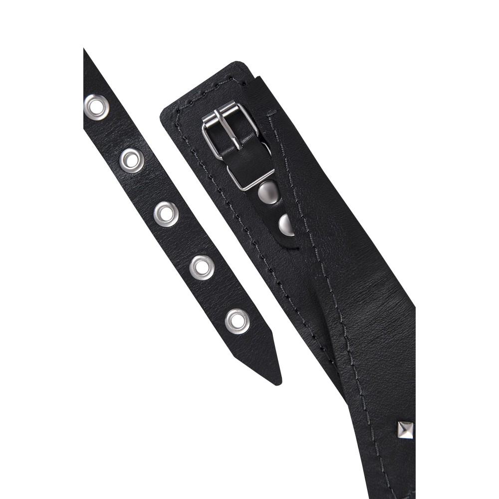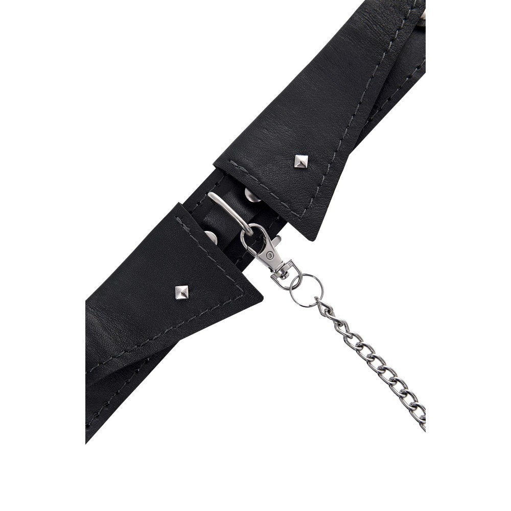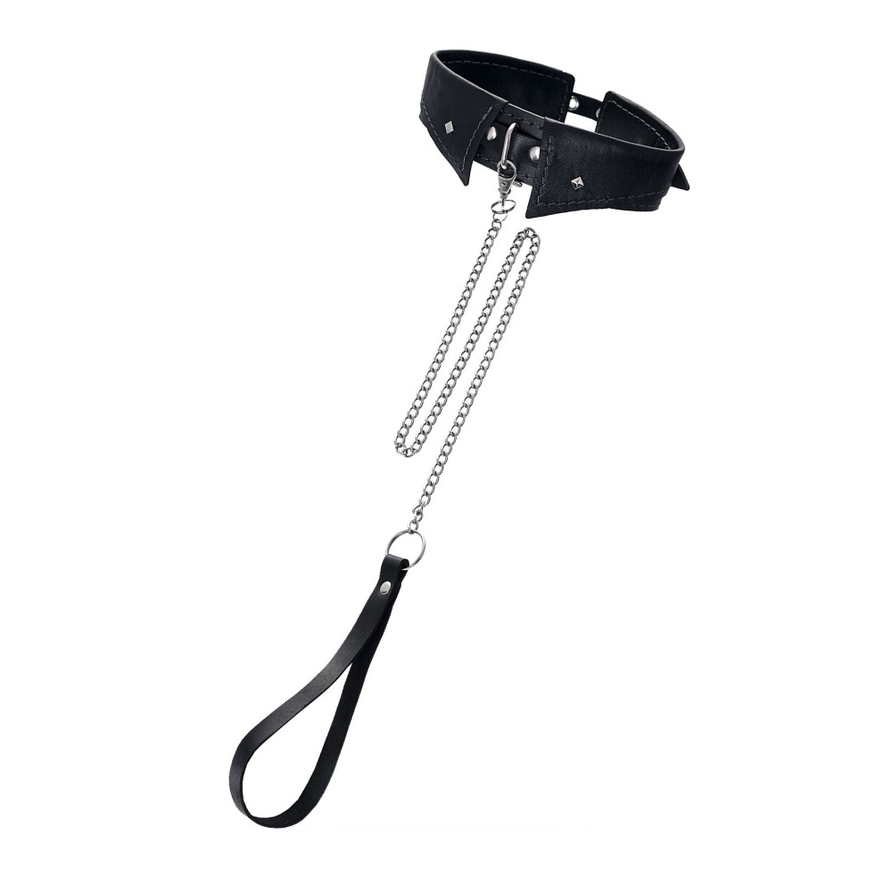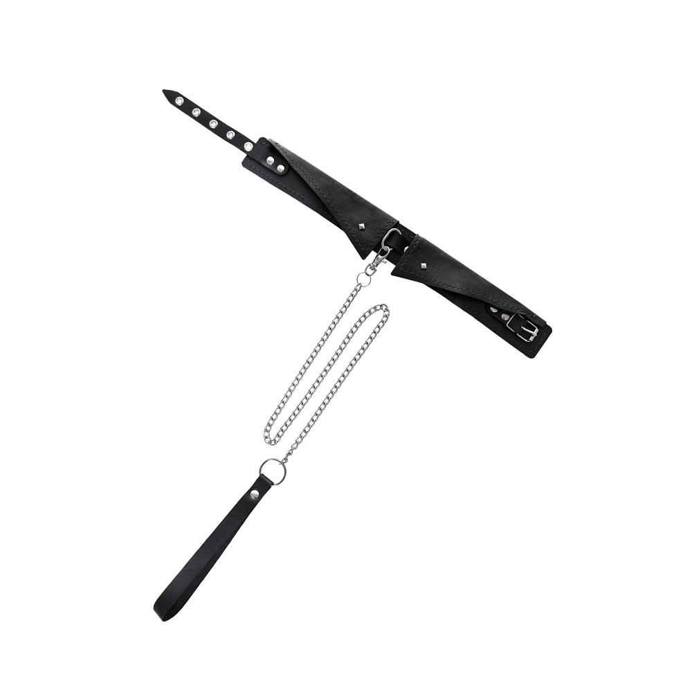 Черный кожаный ошейник-воротник с поводком
