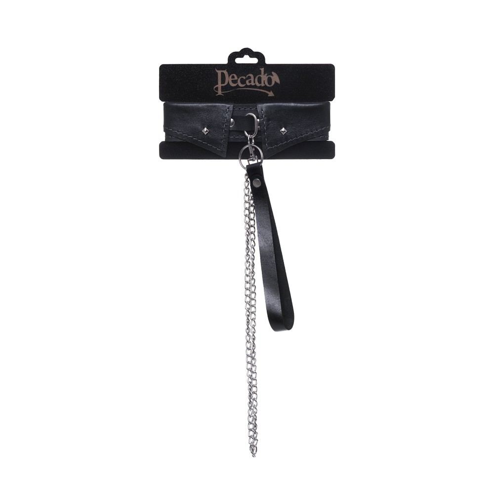 Черный кожаный ошейник-воротник с поводком — стильный аксессуар для БДСМ-практик. Изготовлен из натуральной кожи российского производства, обеспечивает комфорт и долговечность использования. Универсальная гендерная специфика делает его идеальным выбором для пар любого состава. Функциональная садомазохистская атрибутика для доминирования и подчинения в интимных играх. Поставляется без упаковки — готов к немедленному использованию.
