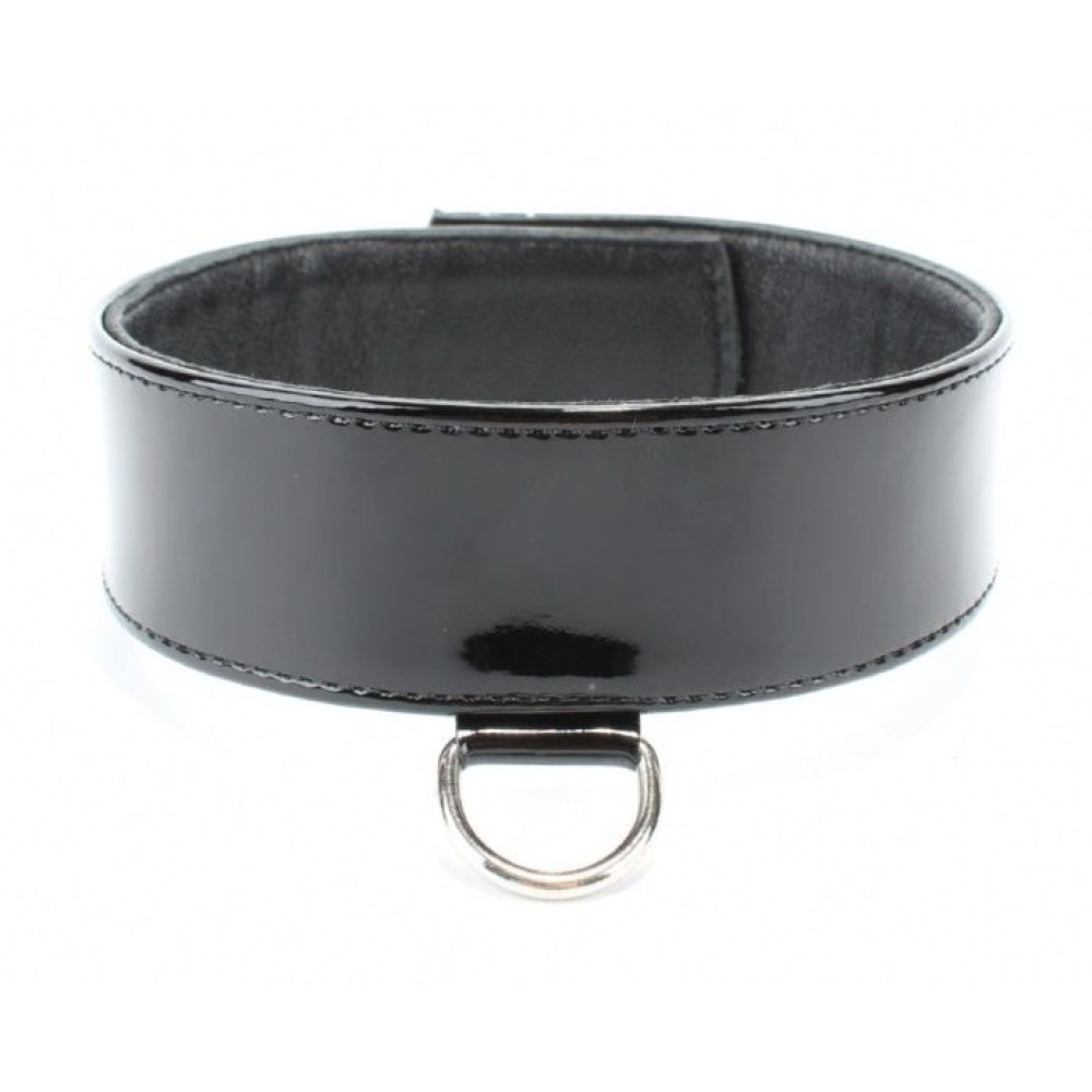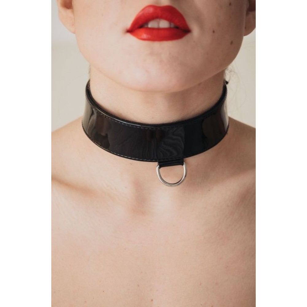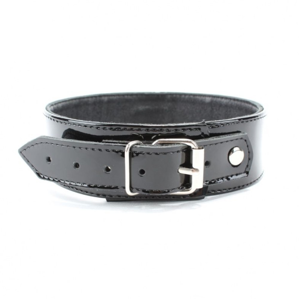 Черный лаковый ошейник на пряжке из натуральной кожи для пар, предпочитающих BDSM-практики. Универсальная модель подходит обоим партнерам, выполнена в классическом лаковом дизайне с надежной металлической пряжкой. Российское производство гарантирует качество материалов и исполнения. Идеален для ролевых игр и расширения интимных сценариев. Поставляется без упаковки для сохранения дискретности.