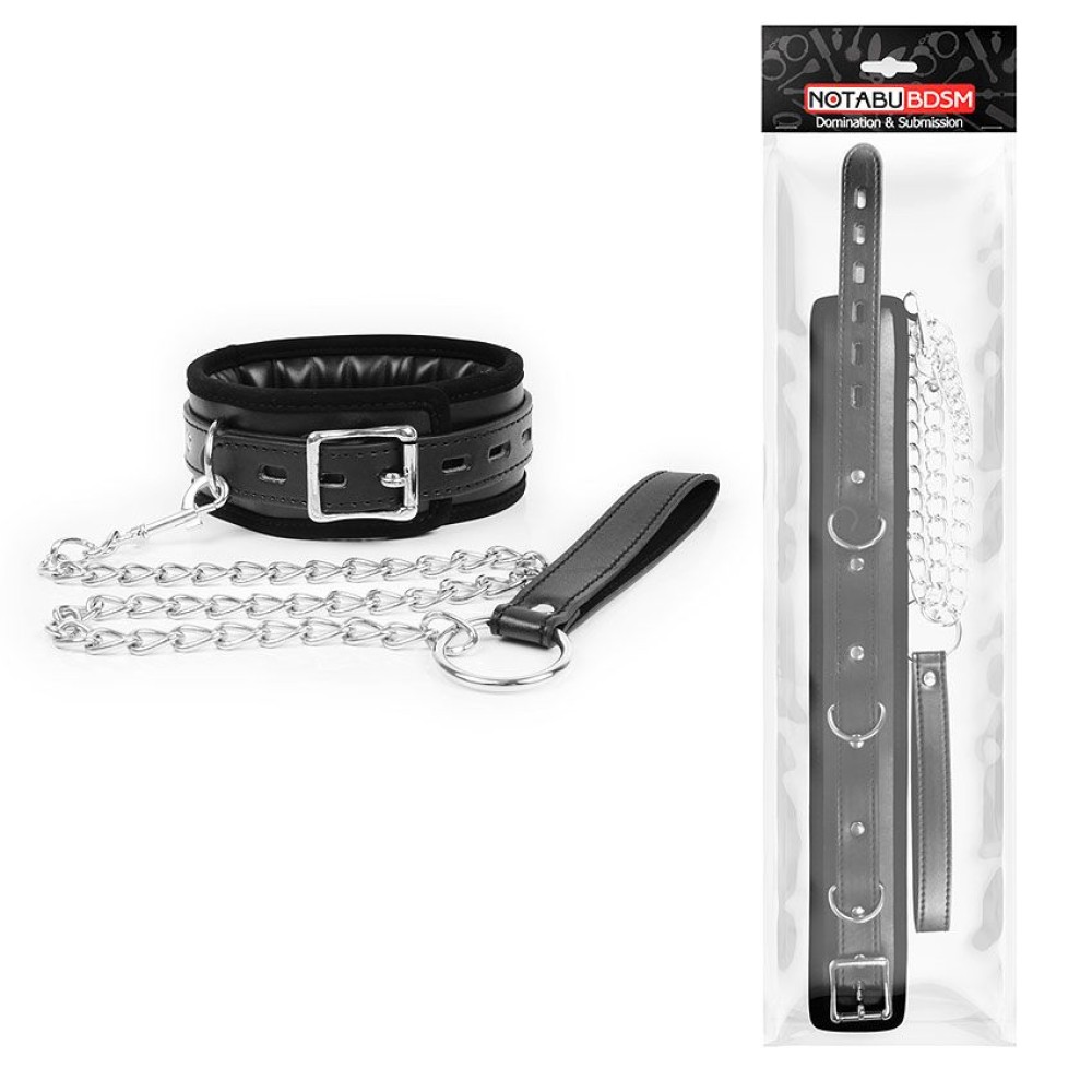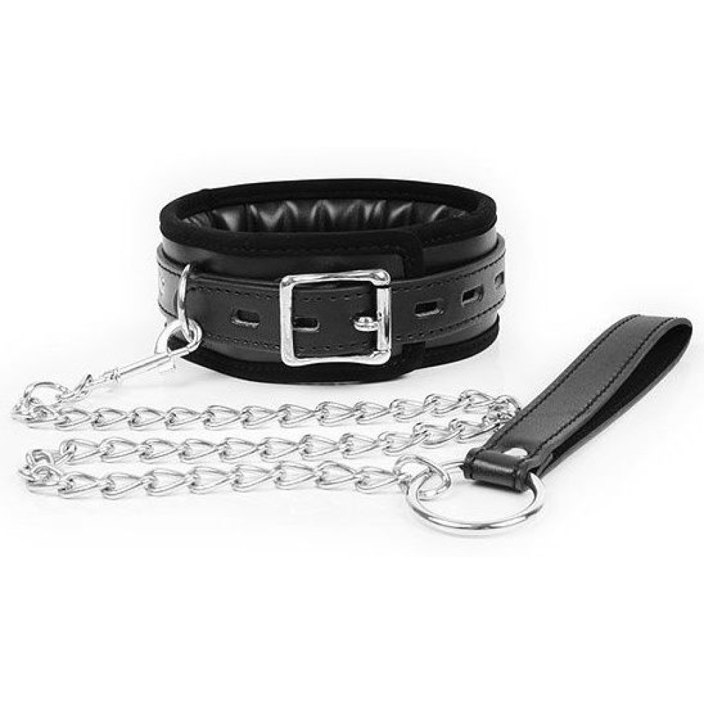 Черный ошейник на металлическом поводке с ручкой-петлей
