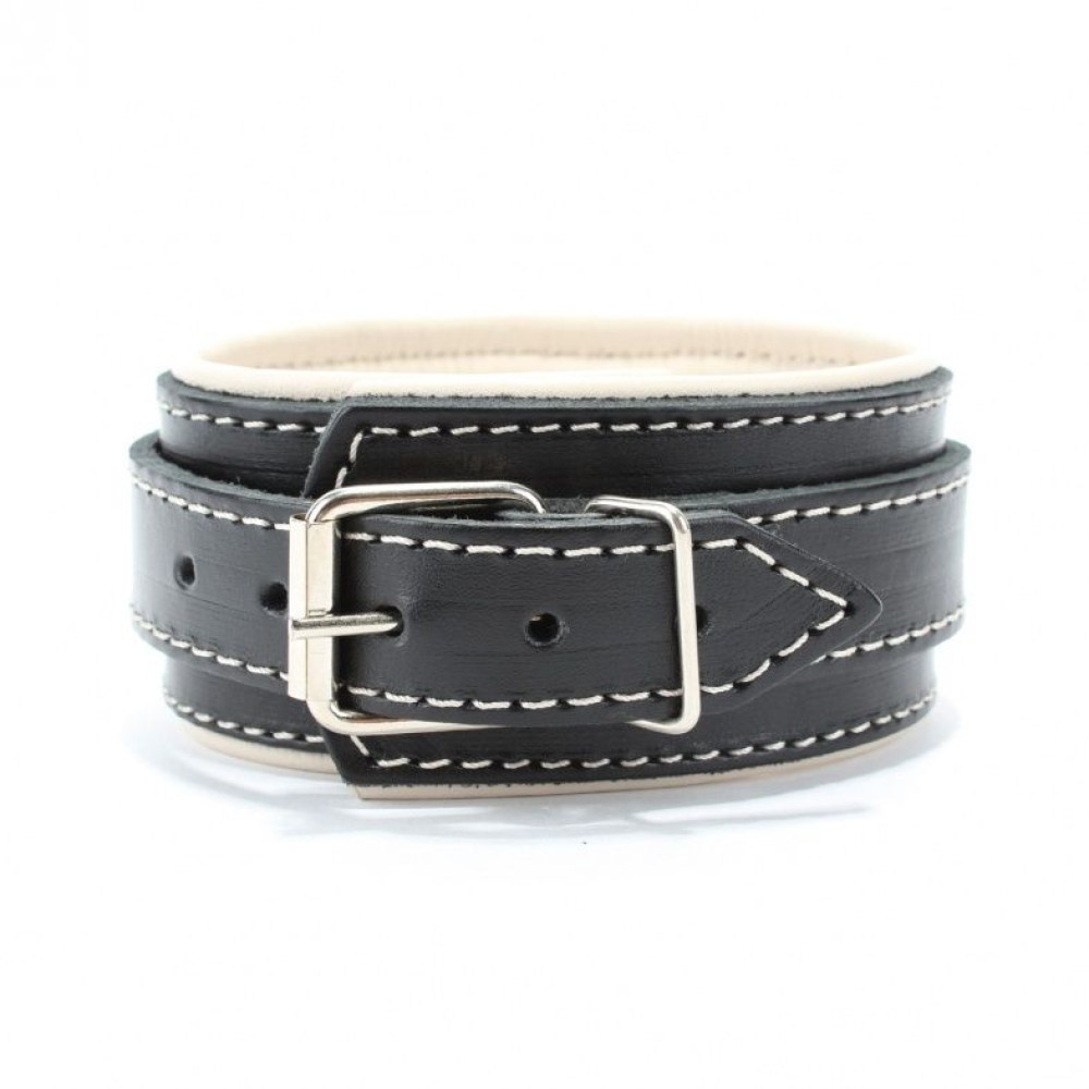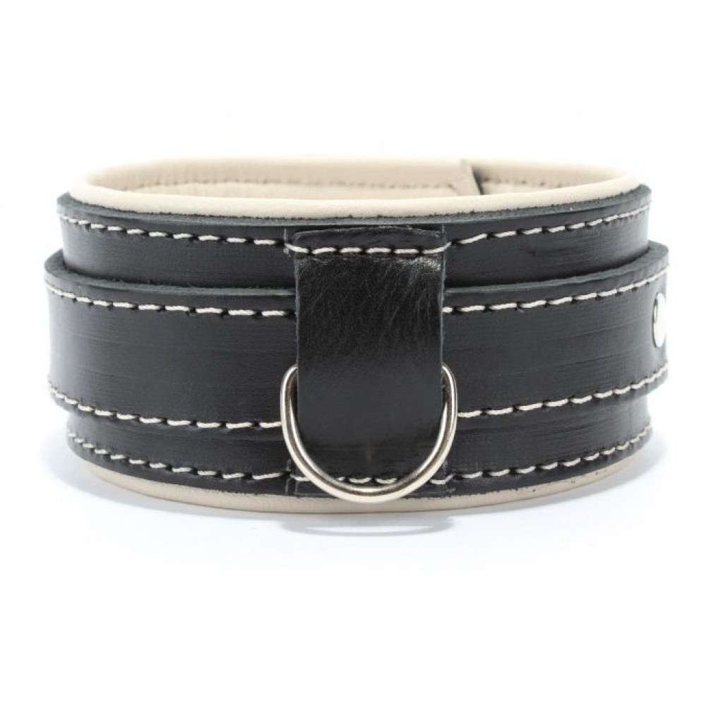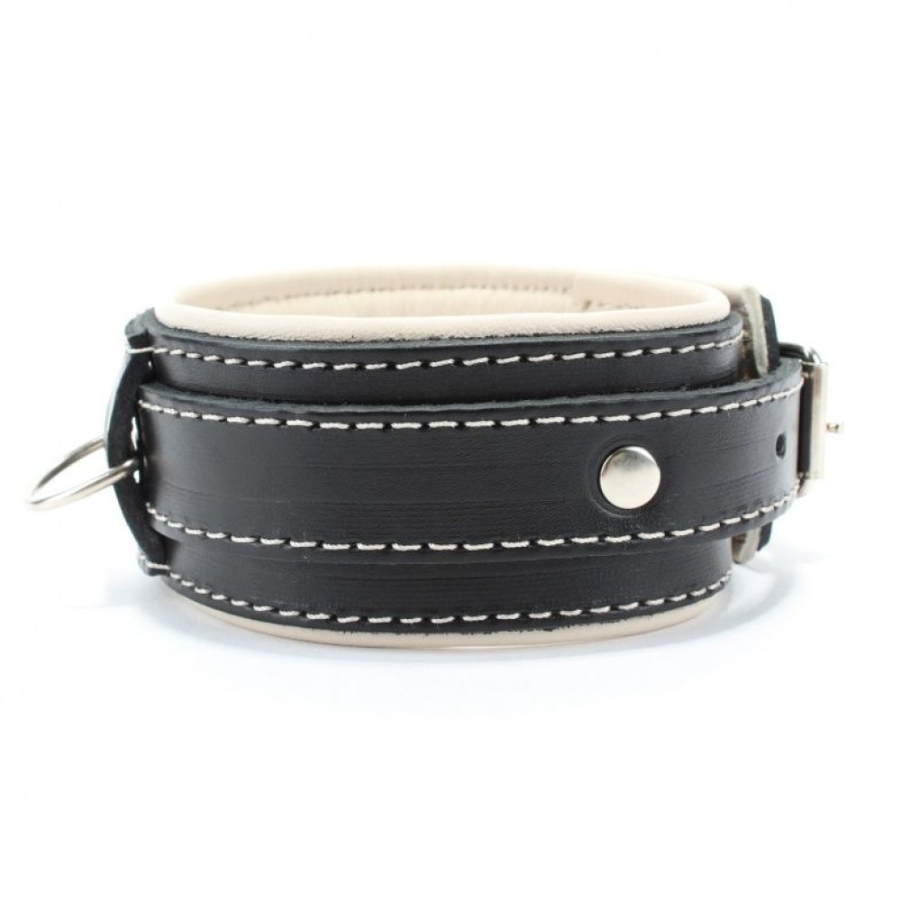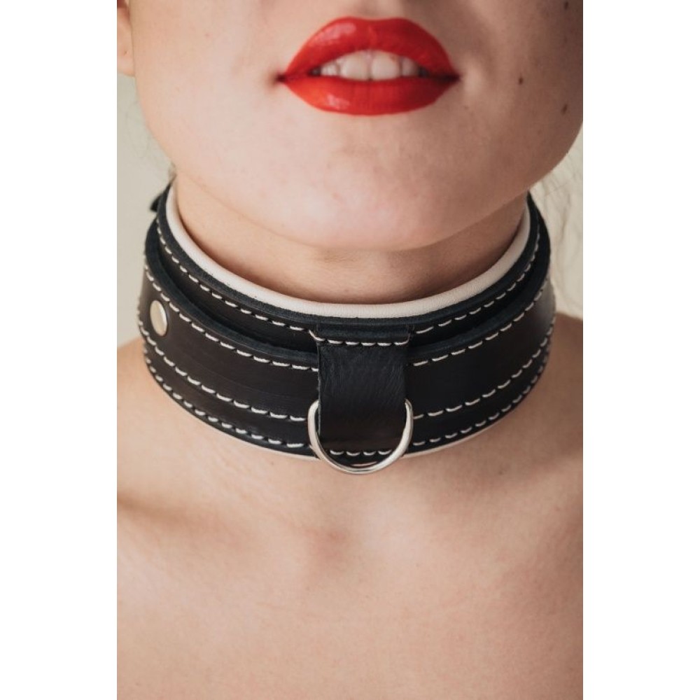Черный ошейник с бежевым подкладом из натуральной кожи — универсальный аксессуар для пар, исследующих BDSM-практики. Российское производство гарантирует качество и долговечность. Мягкая бежевая подкладка обеспечивает комфорт при длительном ношении, а классический черный цвет подчеркивает эстетику доминирования и подчинения. Идеально подходит для ролевых игр и углубления интимного доверия между партнерами. Поставляется без упаковки — для дискретного использования.