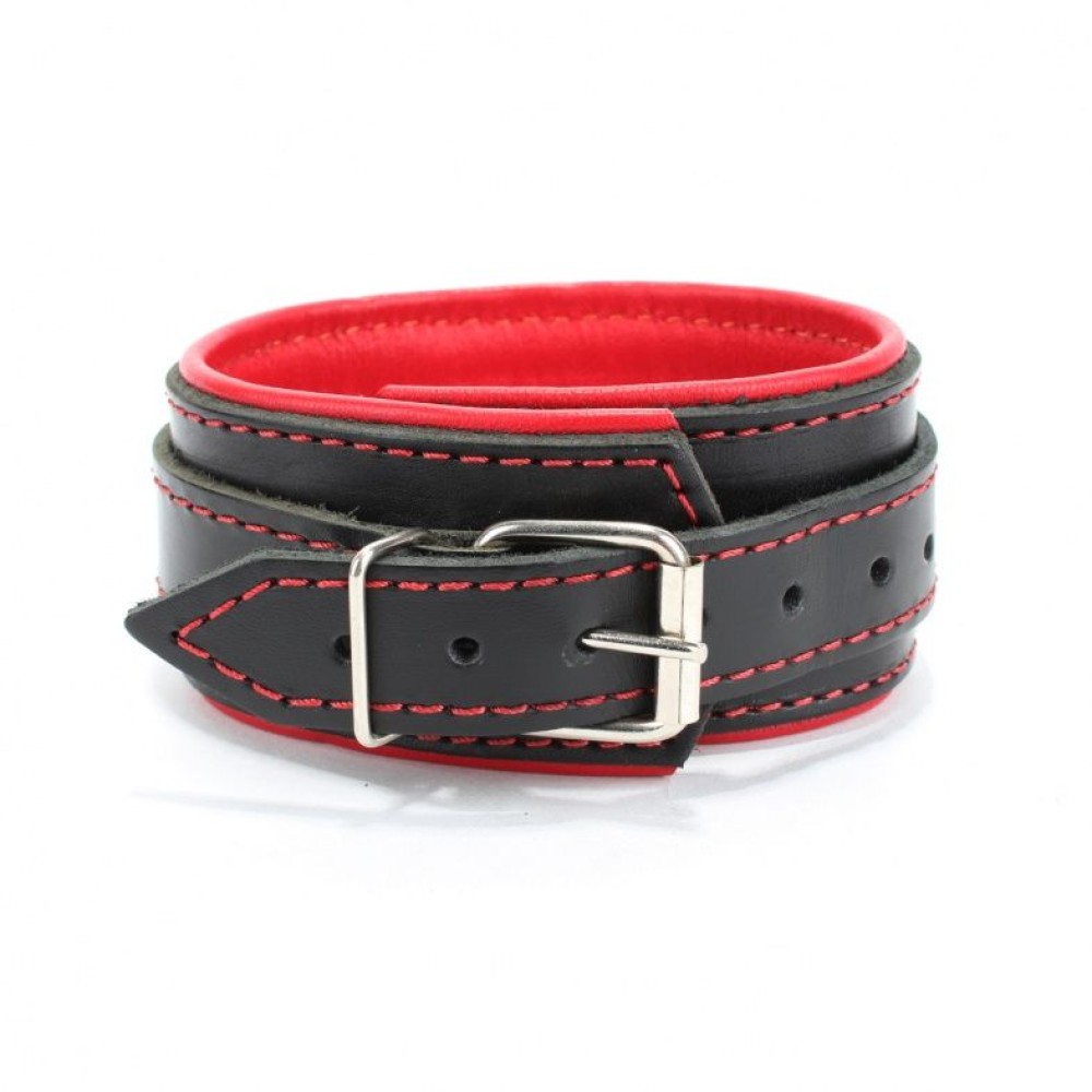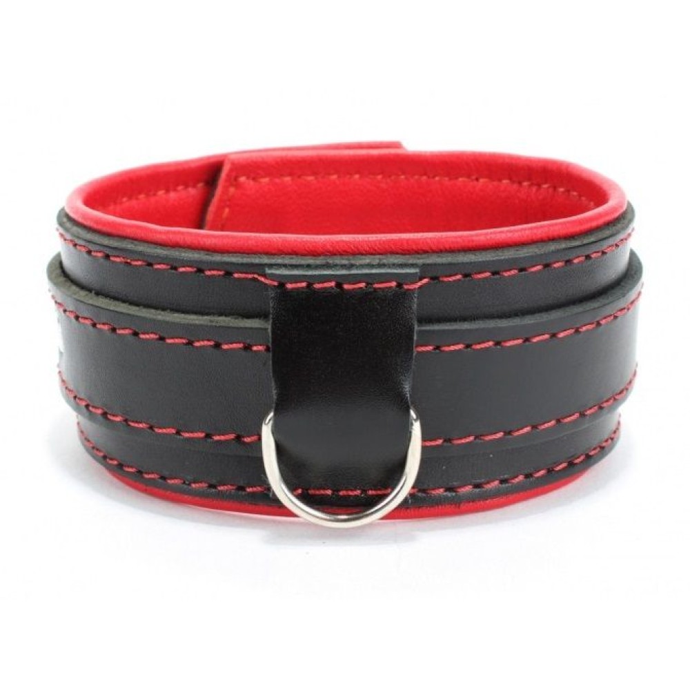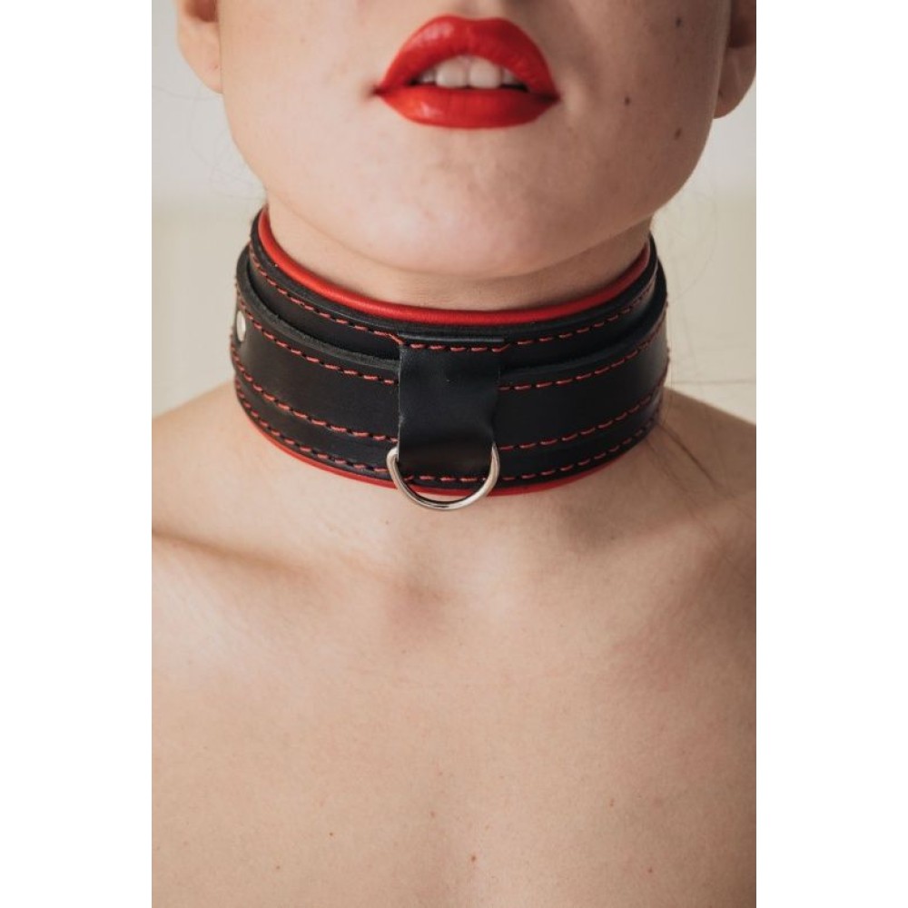 Черный онихник с красным подкладом — стильный аксессуар для БДСМ-практик. Изготовлен из натуральной кожи, подходит для обоих партнеров. Российское производство и бренд. Поставляется без упаковки. Идеален для ролевых игр и доминирования.