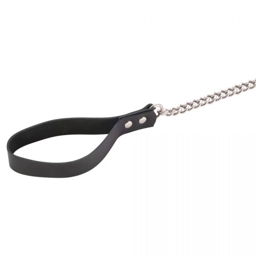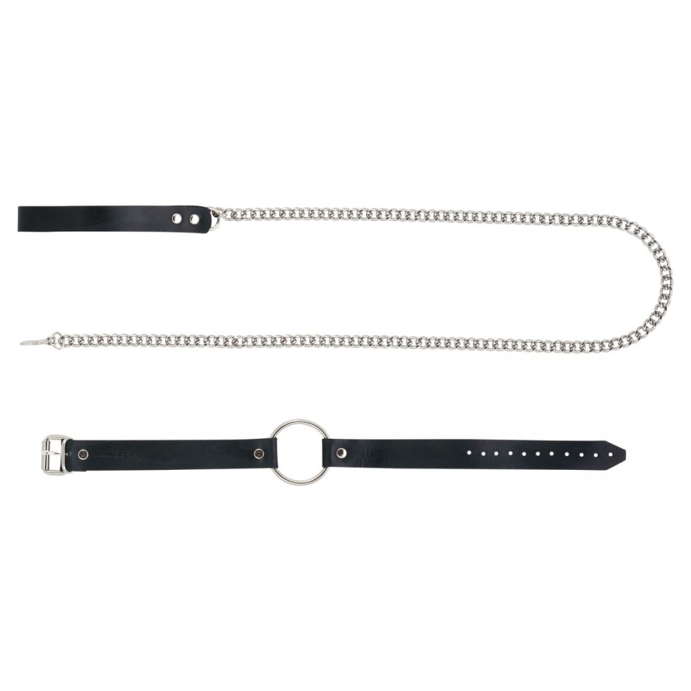 Металлический поводок с кожаной ручкой и чокер с кольцом идеально подходит для контроля над партнером. Пристегните поводок к чокеру и дайте волю своему воображению. Чокер также можно носить как отдельный аксессуар. Длина чокера - 52 см., ширина - 2,5 см.