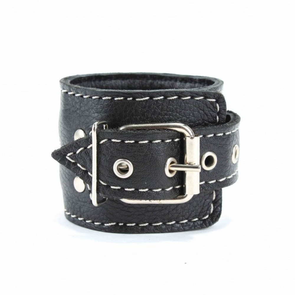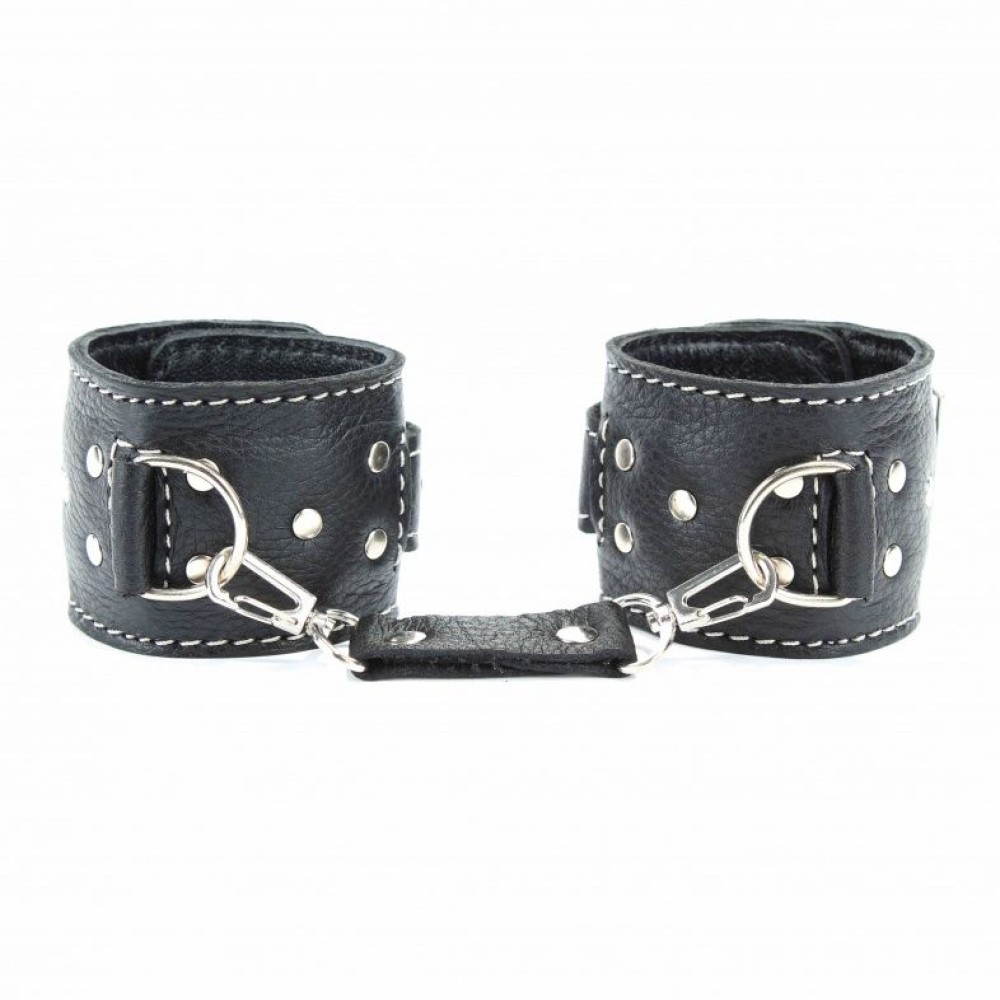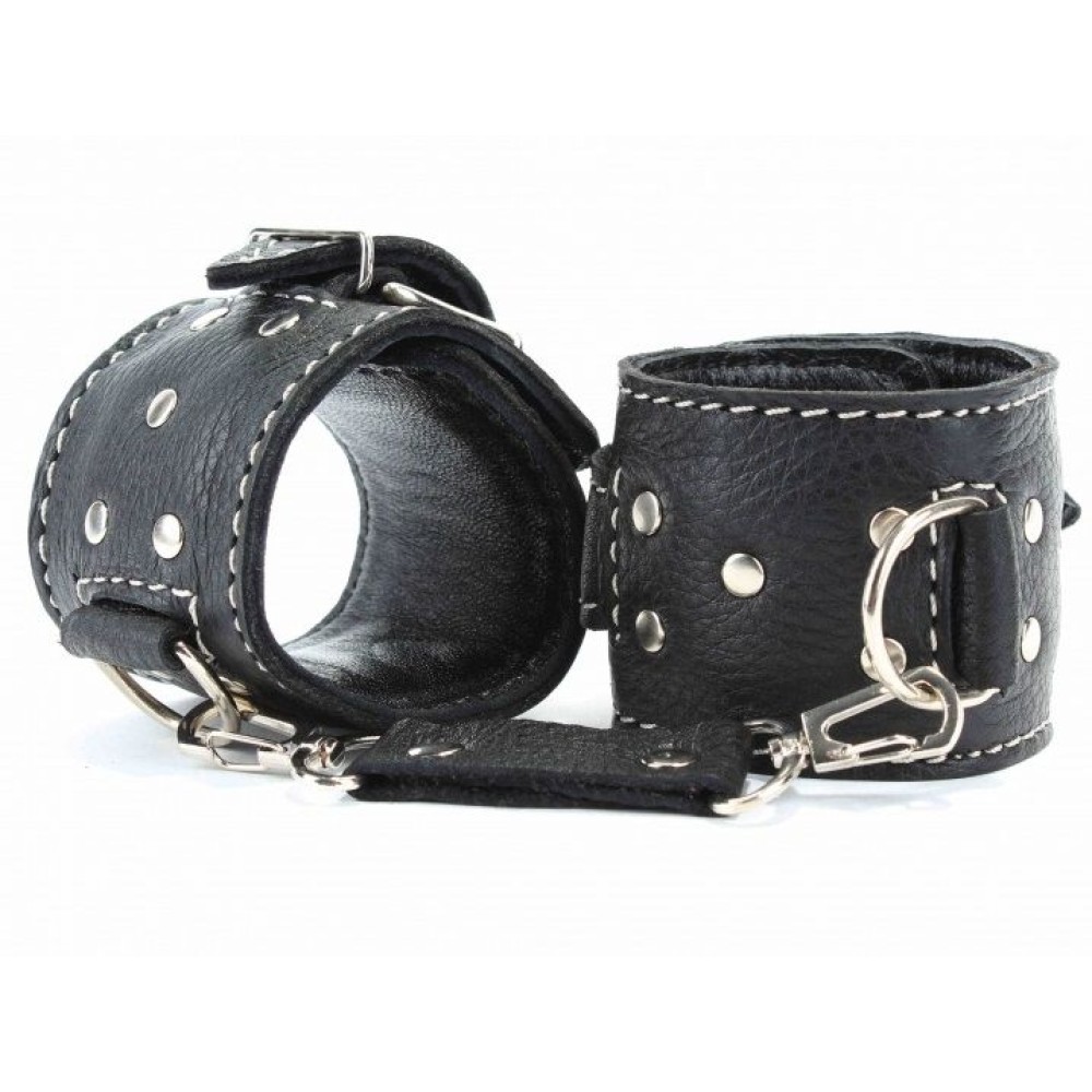 Технические характеристики Чёрные кожаные наручники с крупной строчкой