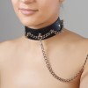 Ошейник средней ширины, украшенный декоративной цепочкой. Изготовлен из натуральной кожи и никелированной фурнитуры. Размер универсальный. Ширина - 5 см.