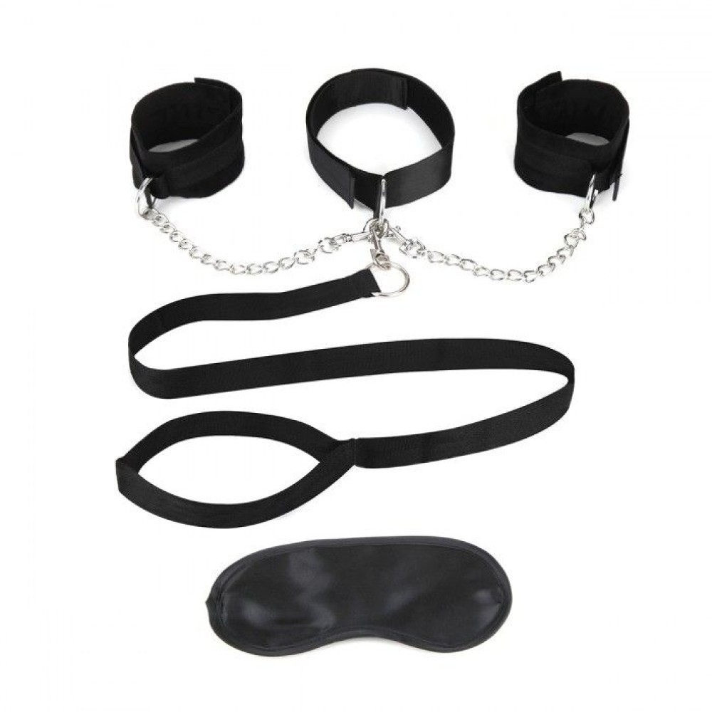 Чёрный ошейник с наручниками и поводком Collar Cuffs & Leash Set
