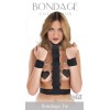 Чёрный набор для полной фиксации верхней части тела партнёра, создаёт несколько вариантов ограничения свободы. Застёгивается на груди и на спине. Несколько колец позволяют фиксировать руки на разных расстояниях. Фиксатор на талии и ошейник подходит на разные размеры. В набор входит: наручники, ошейник с лентой и шестью кольцами, к которым крепятся наручники. Длина фиксатора на талии - 96 см., ширина - 4 см.