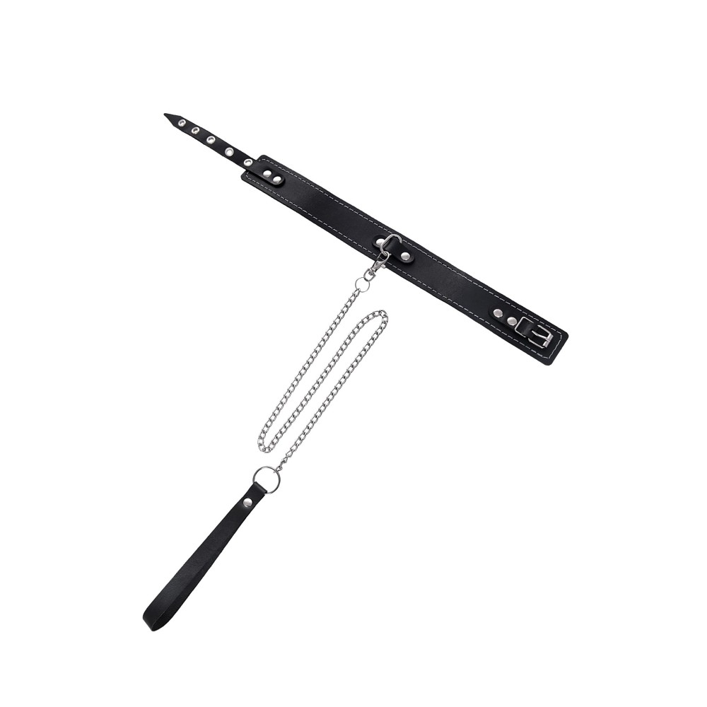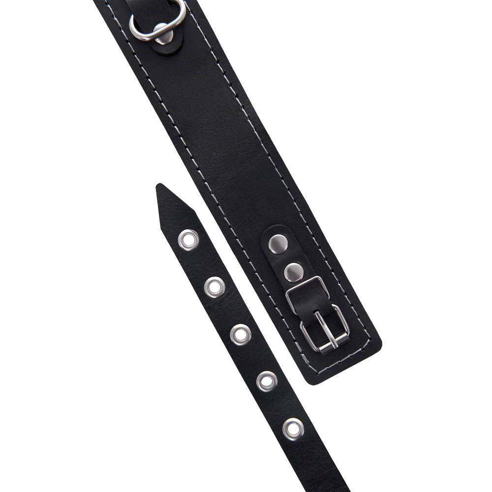 Кожаный двухслойный ошейник с белой строчкой и поводком