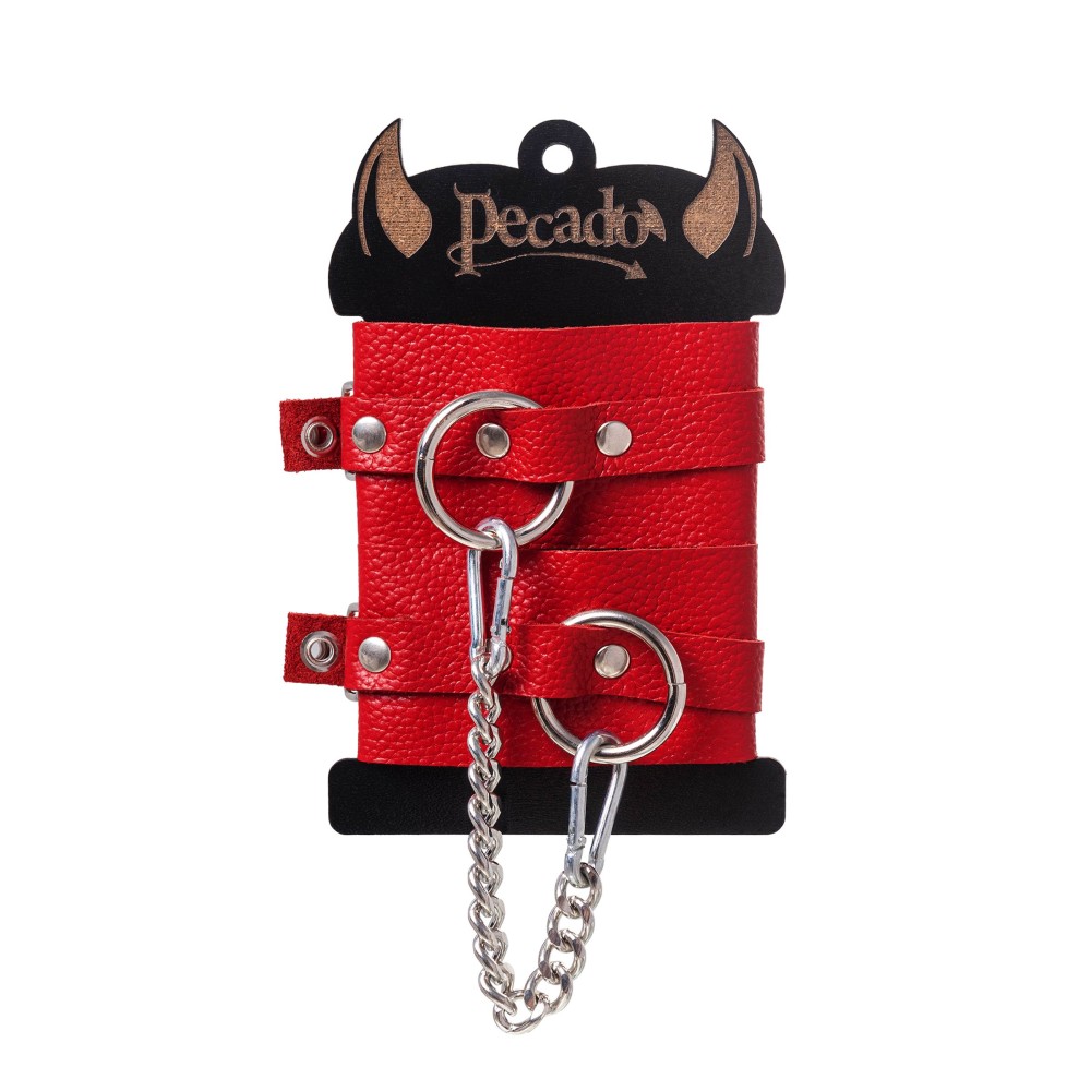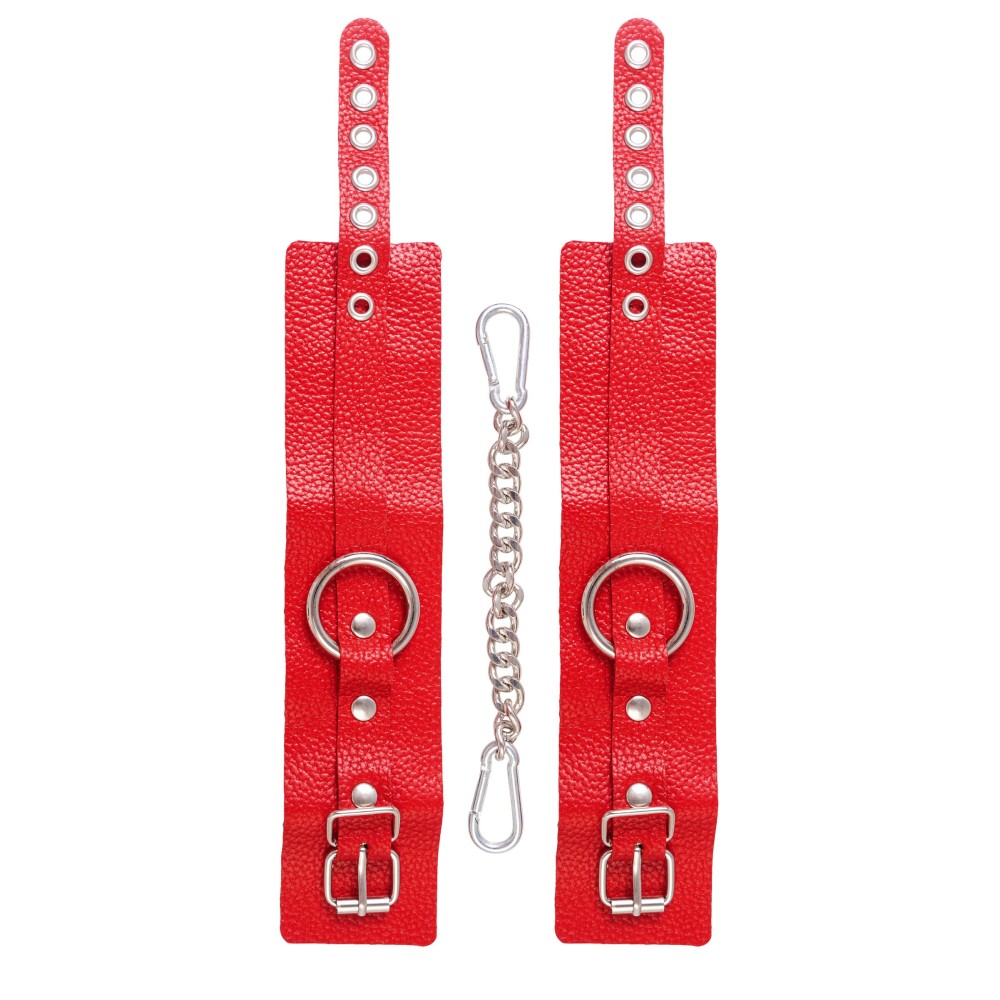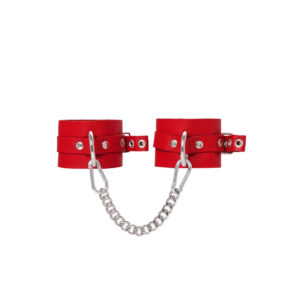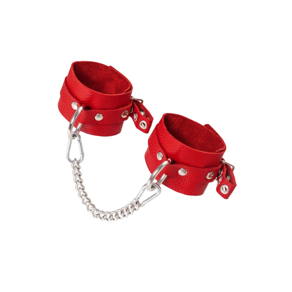 Эти стильные красные наручники из натуральной кожи станут изысканным дополнением ваших интимных игр. Мягкая, но прочная кожа комфортно прилегает к коже, не вызывая раздражения, а металлические люверсы обеспечивают надежную фиксацию.