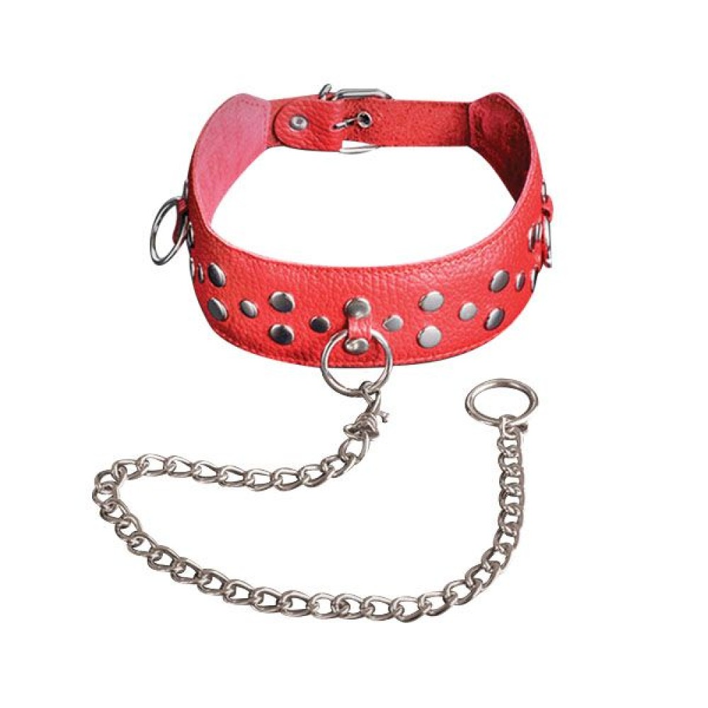 Красный кожаный ошейник с карабином и поводком для BDSM практик. Универсальный аксессуар для обоих партнеров из натуральной кожи российского производства. Идеальный элемент садомазохистской атрибутики для доминирования и подчинения. В комплекте прочный поводок для полного контроля. Поставляется в защитной пластиковой коробке. Коллекция: BDSM accessories.