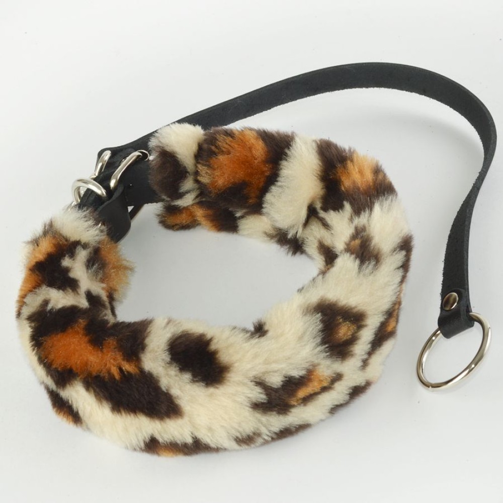 Технические характеристики Леопардовый меховой ошейник с кожаным поводком