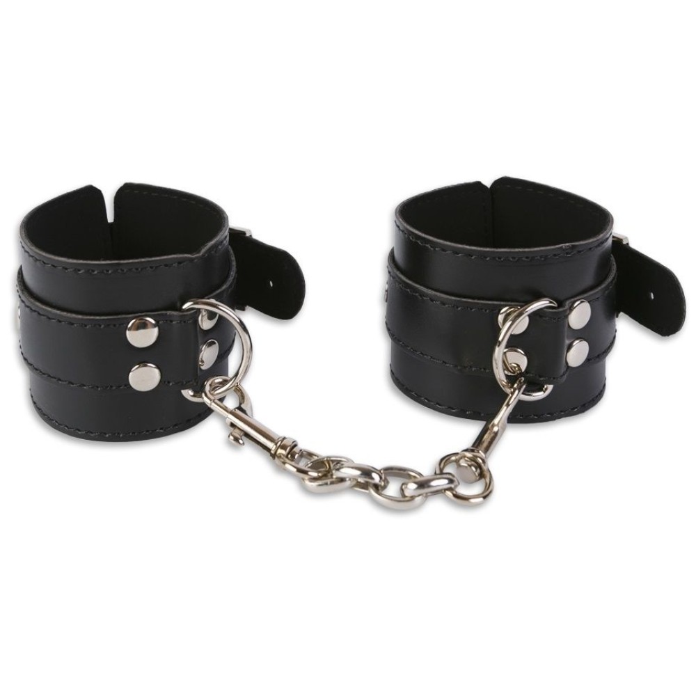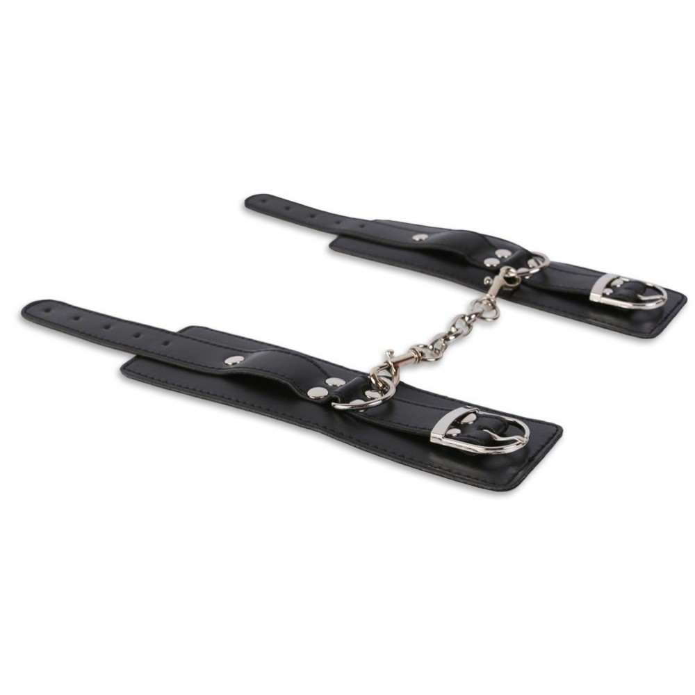 Манжеты с ремешками и карабинами для сцепки — стильный и функциональный аксессуар для любителей БДСМ-практик. Изготовлены из качественной искусственной кожи, которая приятна на ощупь и легко очищается. Универсальный дизайн подходит для обоих партнеров, позволяя экспериментировать с ролевыми играми и ограничением подвижности. Надежные карабины обеспечивают быструю и безопасную фиксацию, а регулируемые ремешки гарантируют комфортную посадку на запястьях или лодыжках. Бренд из Китая, производство локализовано в России. Товар поставляется в прозрачном пакете, что упрощает хранение и сохраняет презентабельный вид. Идеально дополняет коллекцию садомазохистских аксессуаров для разнообразия интимной жизни.