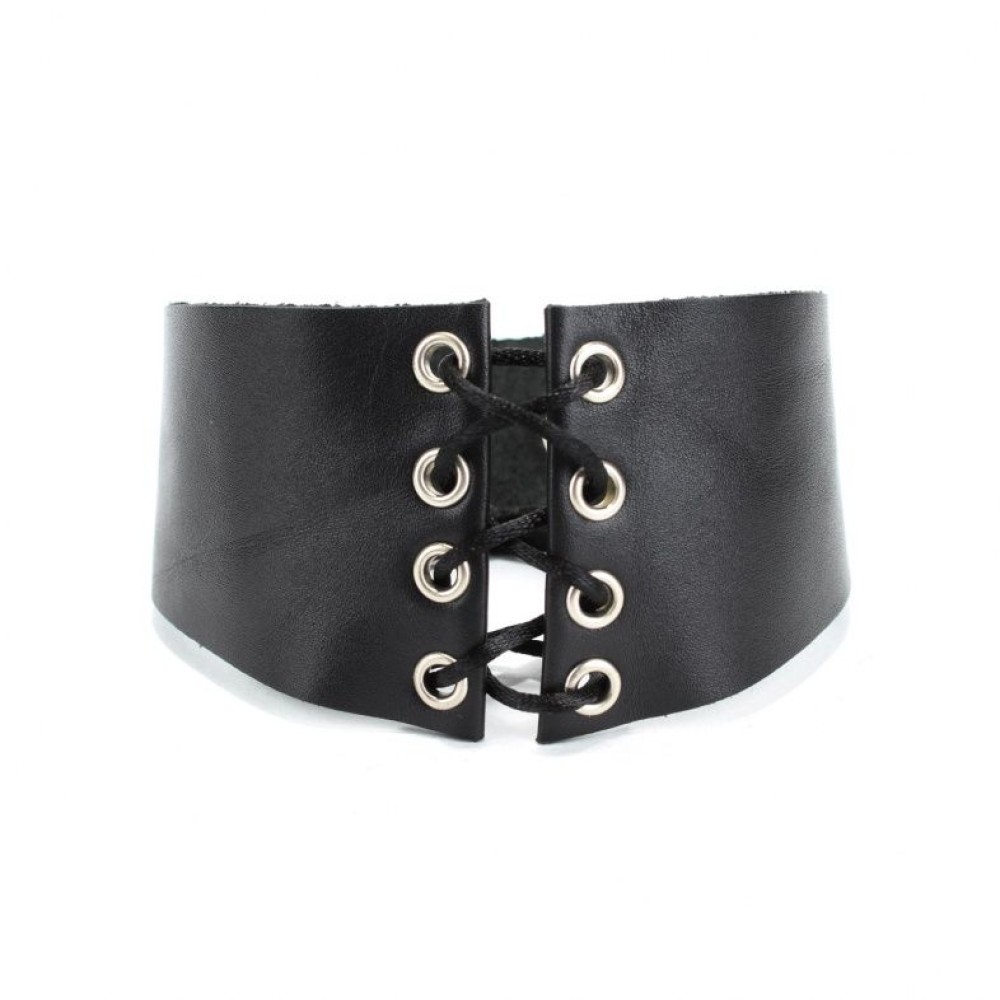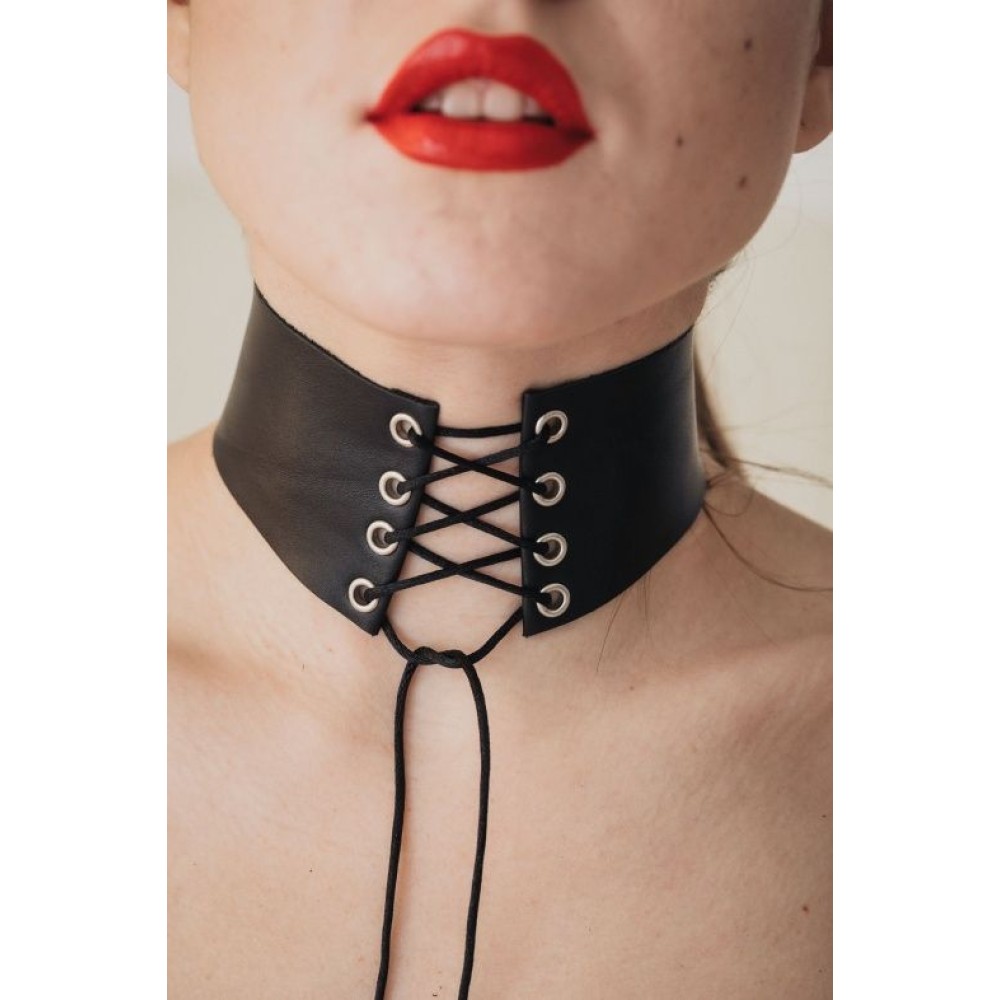 Оригинальный чокер со шнуровкой спереди из натуральной кожи российского производства. Элегантный аксессуар для женщин, создающий неповторимый образ в стиле БДСМ. Шнуровка спереди позволяет регулировать плотность прилегания, обеспечивая комфорт во время интимных игр. Чокер выполнен из качественной натуральной кожи, которая приятна к телу и долговечна в использовании. Идеально подходит для экспериментов в садомазохистских практиках. Товар поставляется в прозрачном пакете. Российский бренд, российское производство гарантируют высокое качество изделия.