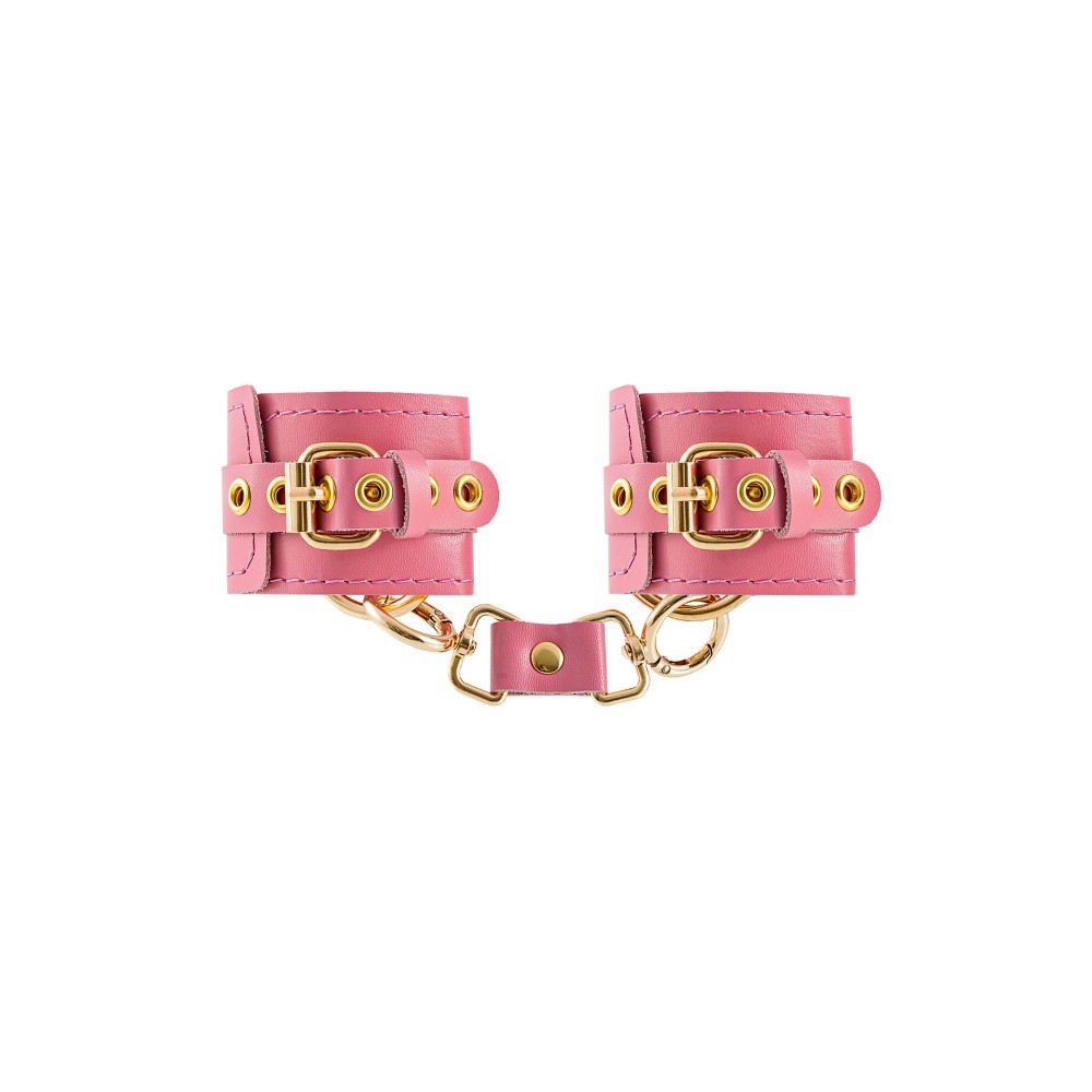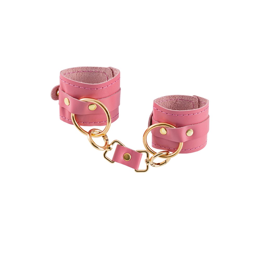 Розовые однослойные кожаные наручники