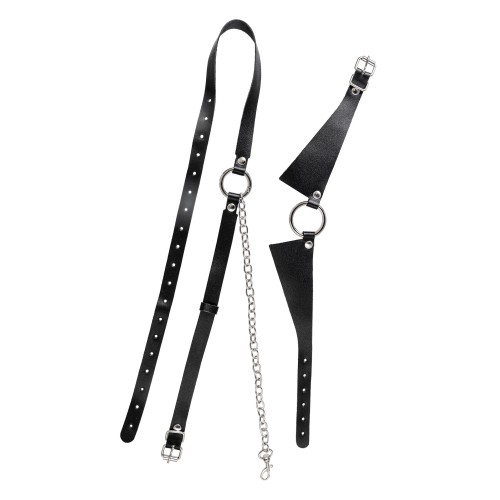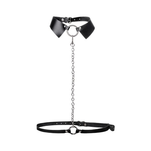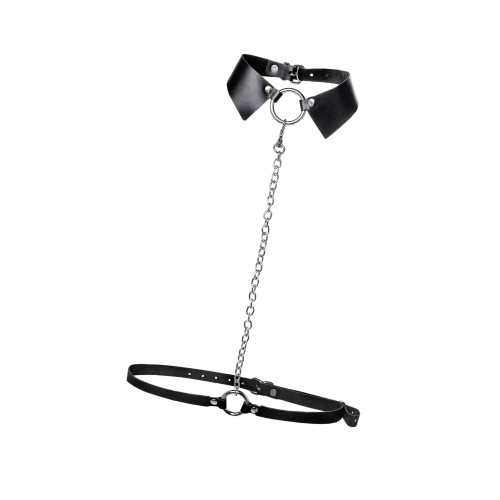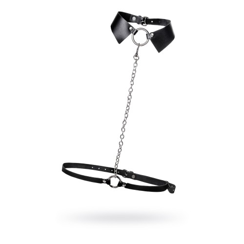 Черная портупея-чокер с поводком и карабином в виде кольца