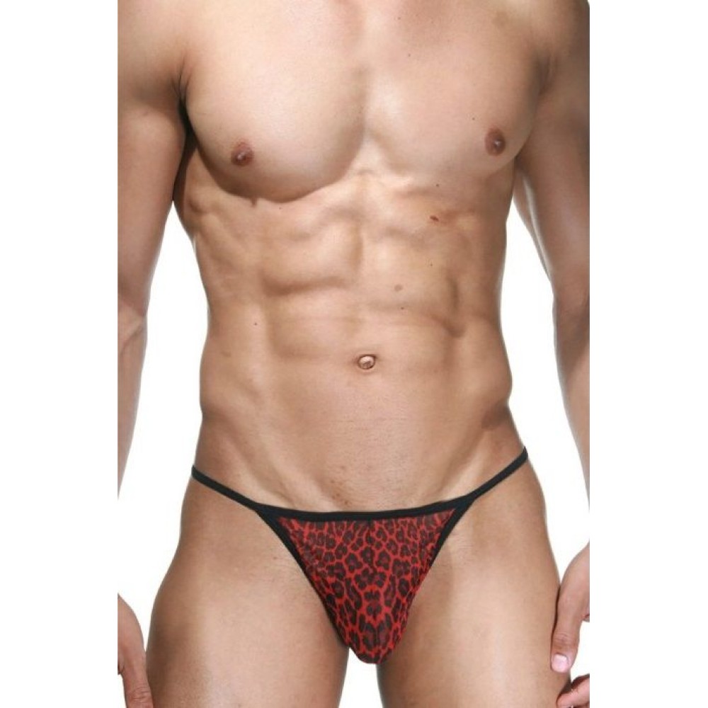 Технические характеристики Черно-красные трусы-стринги с леопардовым принтом