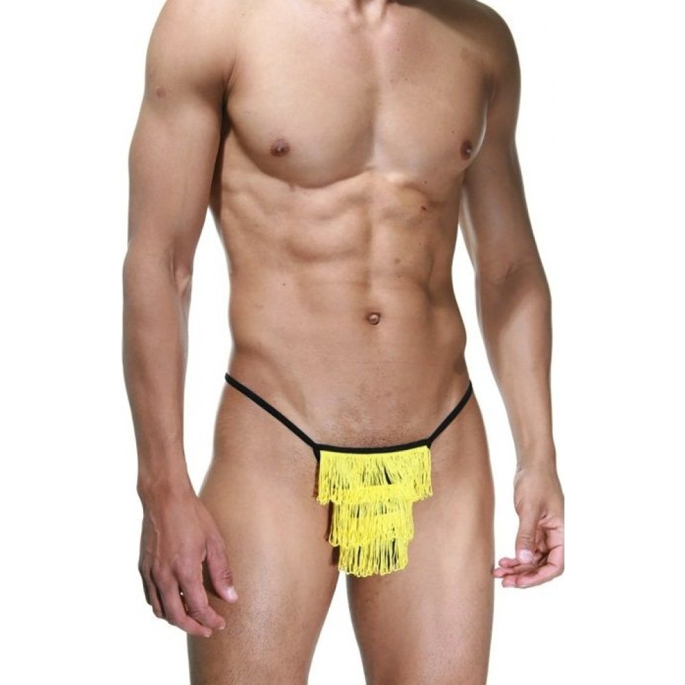 Технические характеристики Черные трусы-стринги с желтой бахромой