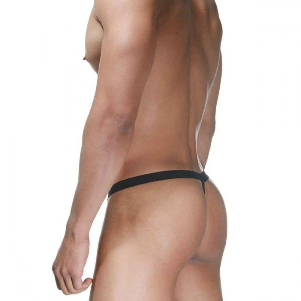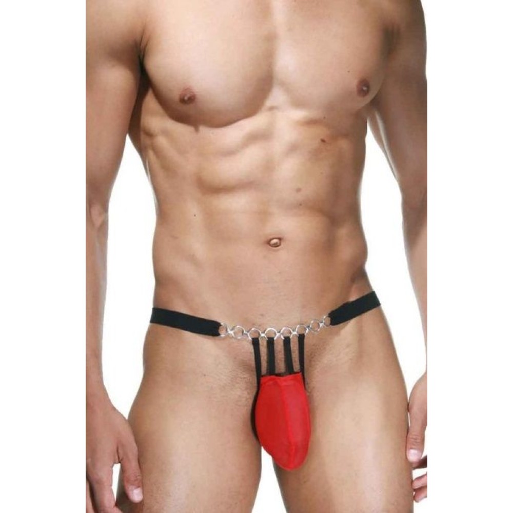 Технические характеристики Красно-черные мужские стринги с серебристыми кольцами