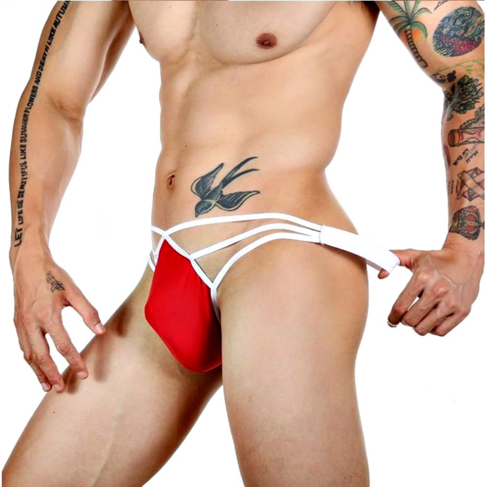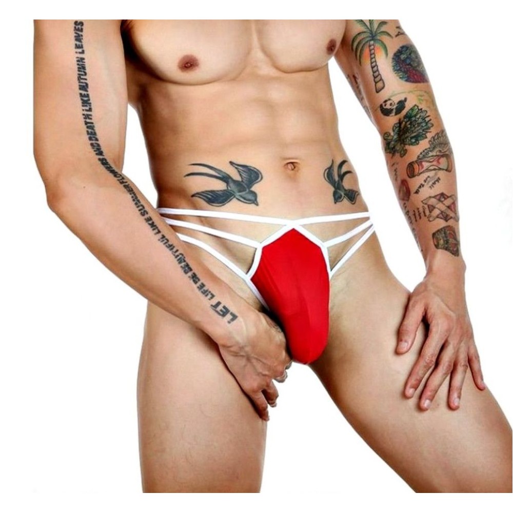 Эротичное белье подчеркивает мужские формы, создавая соблазнительный образ. Тонкие белые бретели добавляют контраст и эстетическую завершенность, делая эту модель особенно привлекательной.