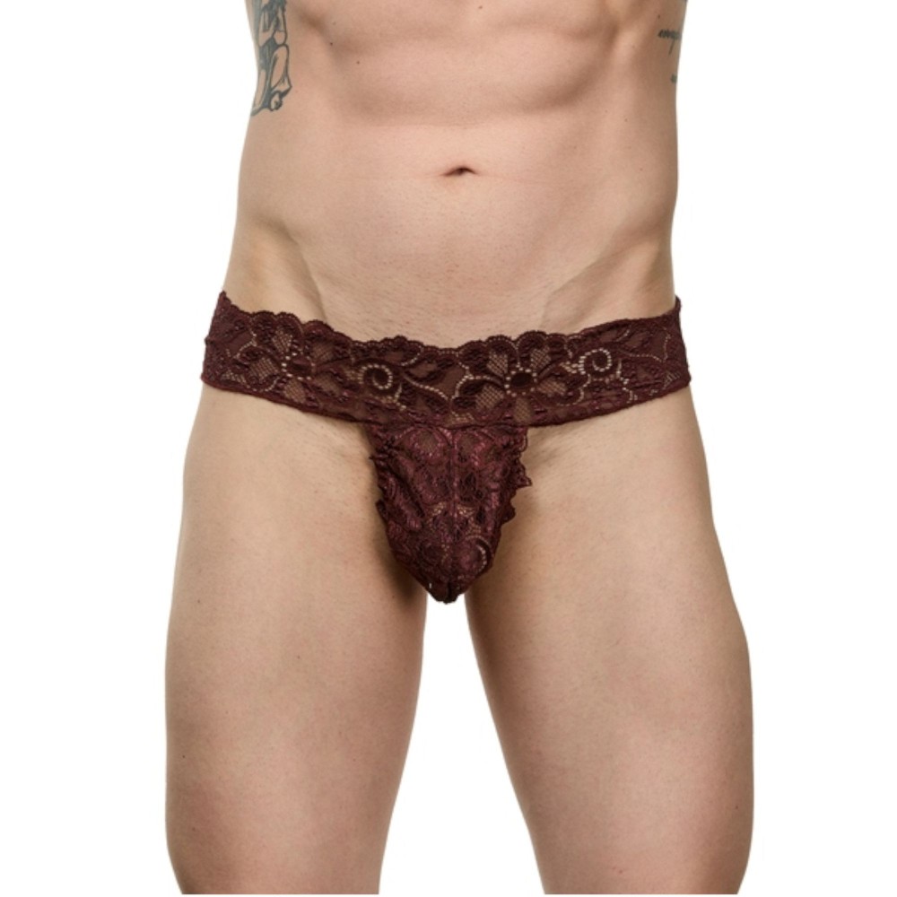 Мужские коричневые кружевные трусы-тонги