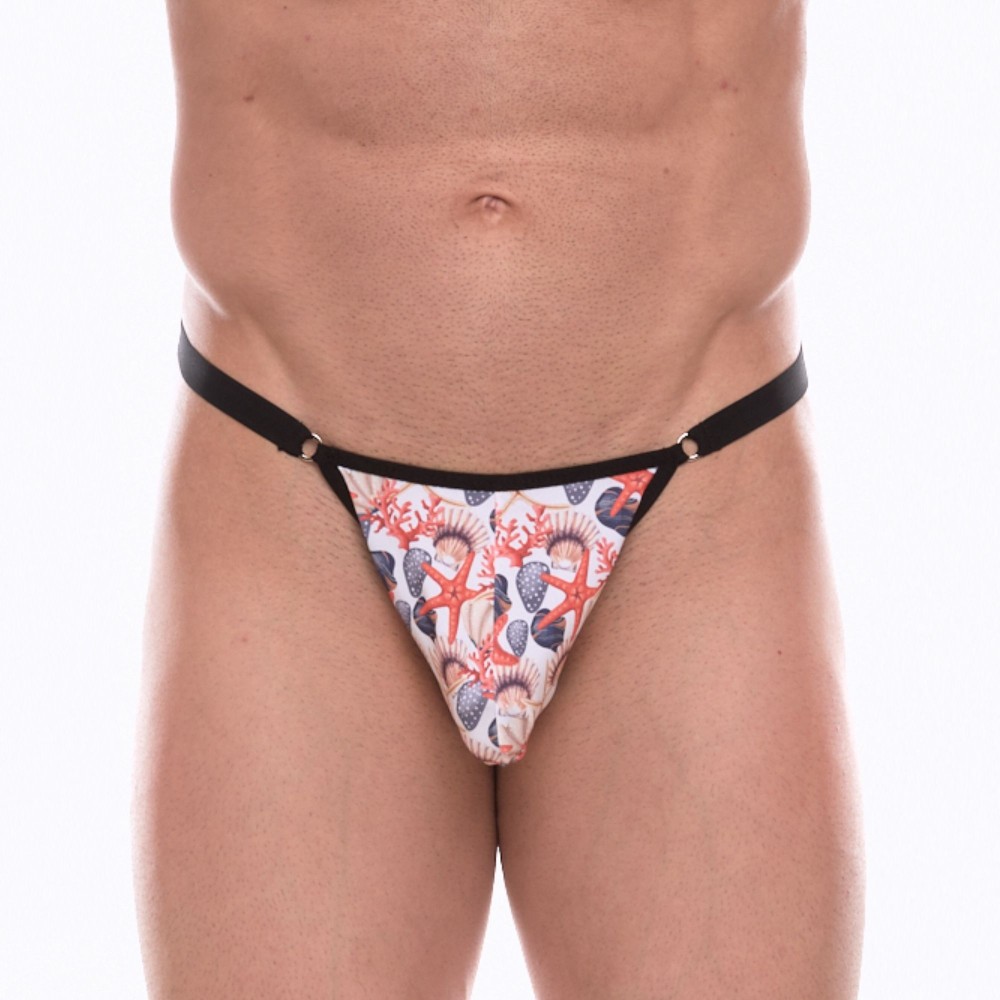 Мужские трусы-тонги с принтом в виде разноцветных ракушек
