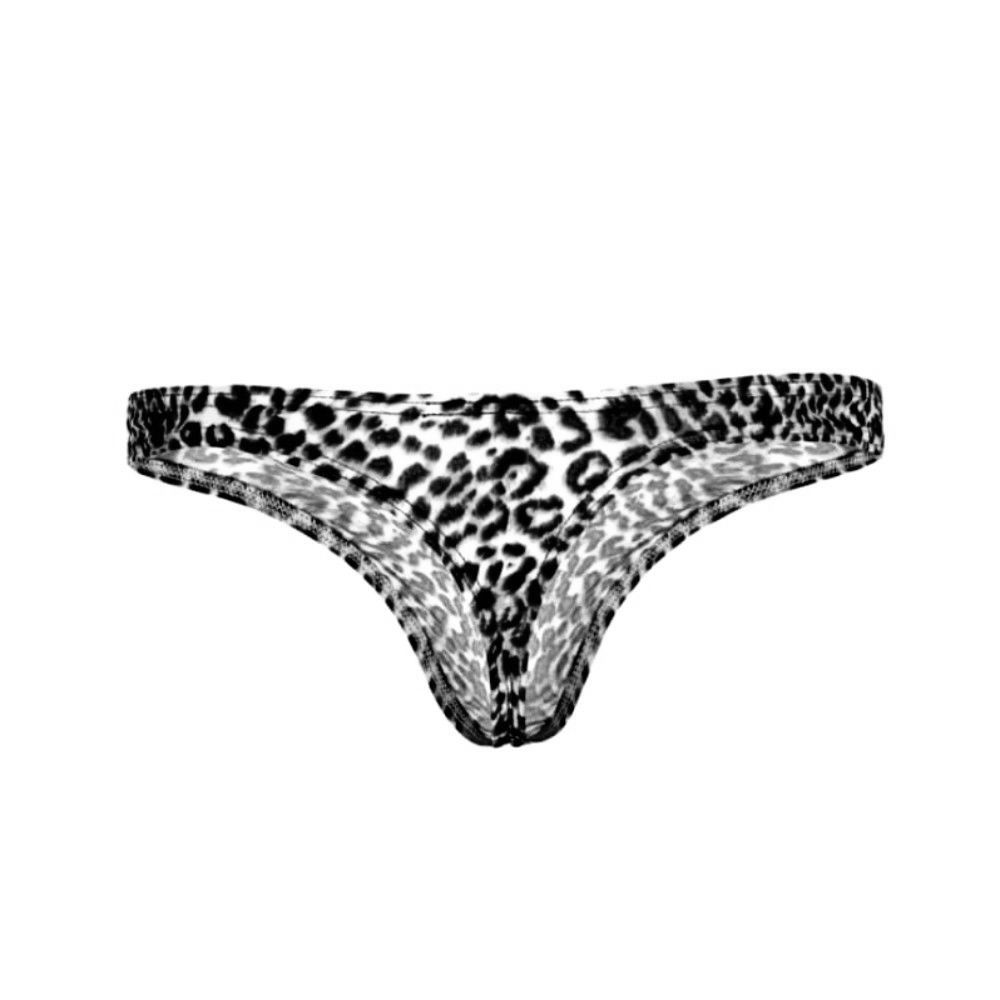 Мужские трусы-тонги с серым леопардовым принтом