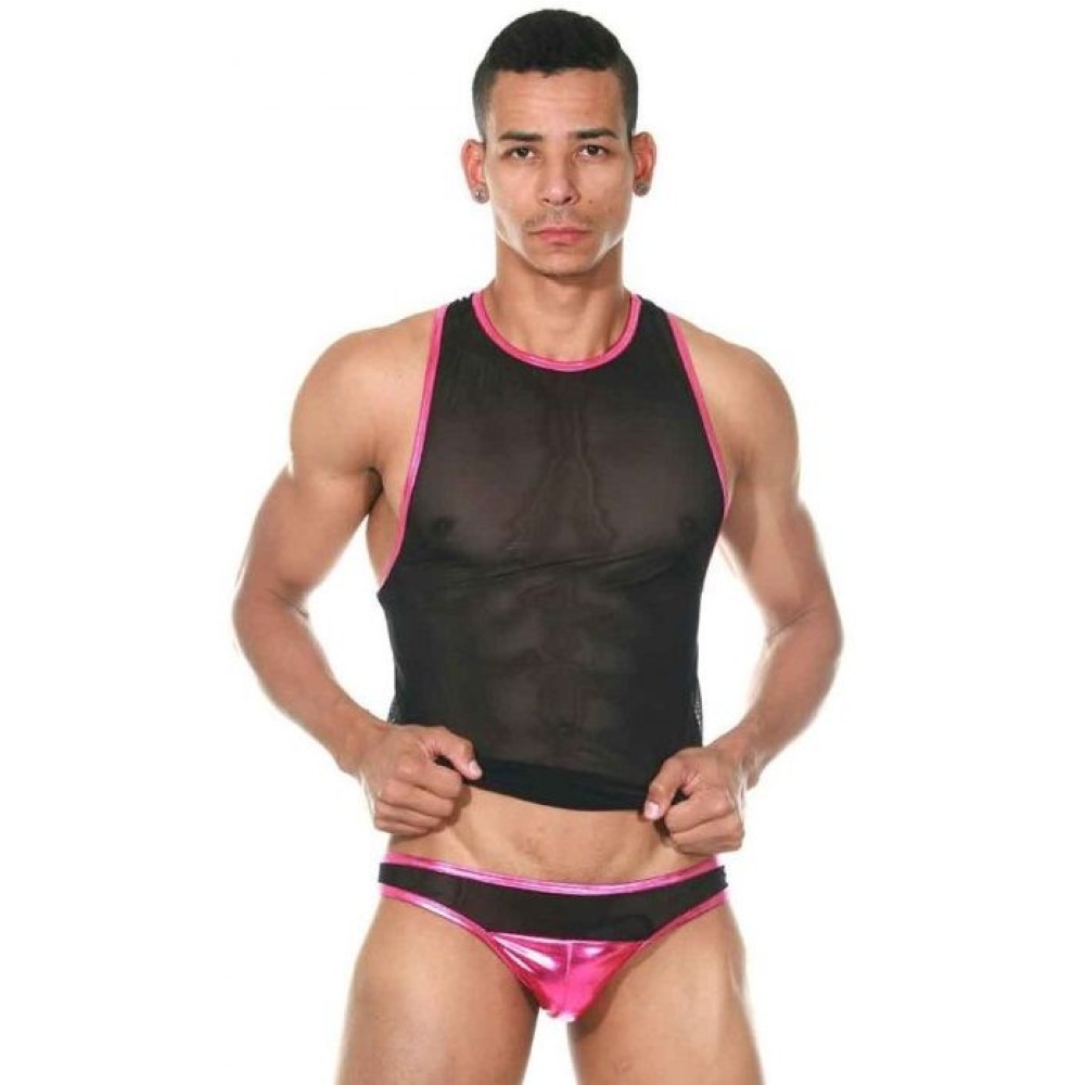 Мужской комплект белья: майка-борцовка и трусы-слипы для страстных моментов. Создан из качественного материала 85% полиэстер и 15% эластан, который идеально облегает тело, подчеркивая мужественную фигуру. Эротичная одежда турецкого производства в стильной картонной упаковке станет отличным подарком для особенных вечеров. Комплект сочетает комфорт и сексуальность, помогая раскрыть новые грани интимной близости.
