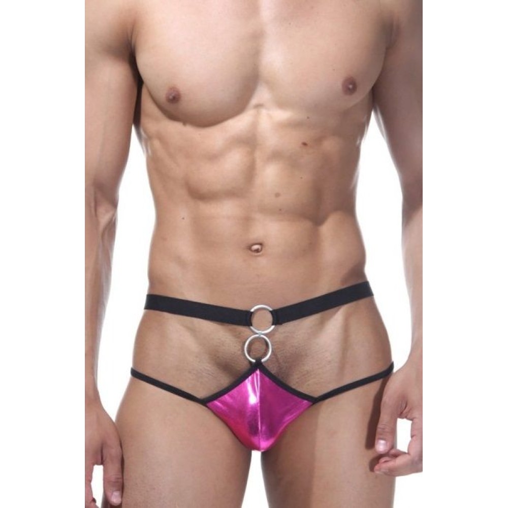 Технические характеристики Розово-черные трусы-джоки с металлическими кольцами
